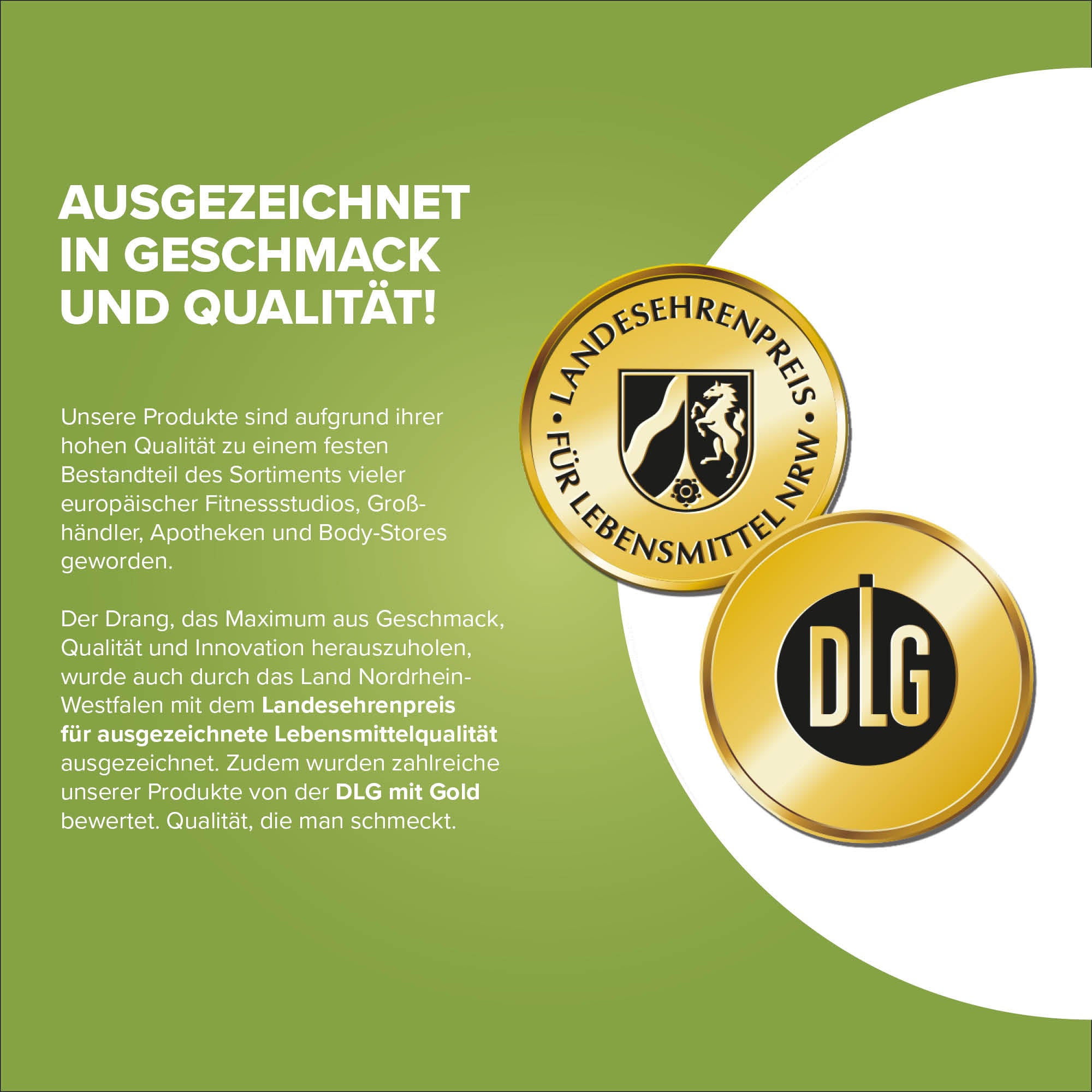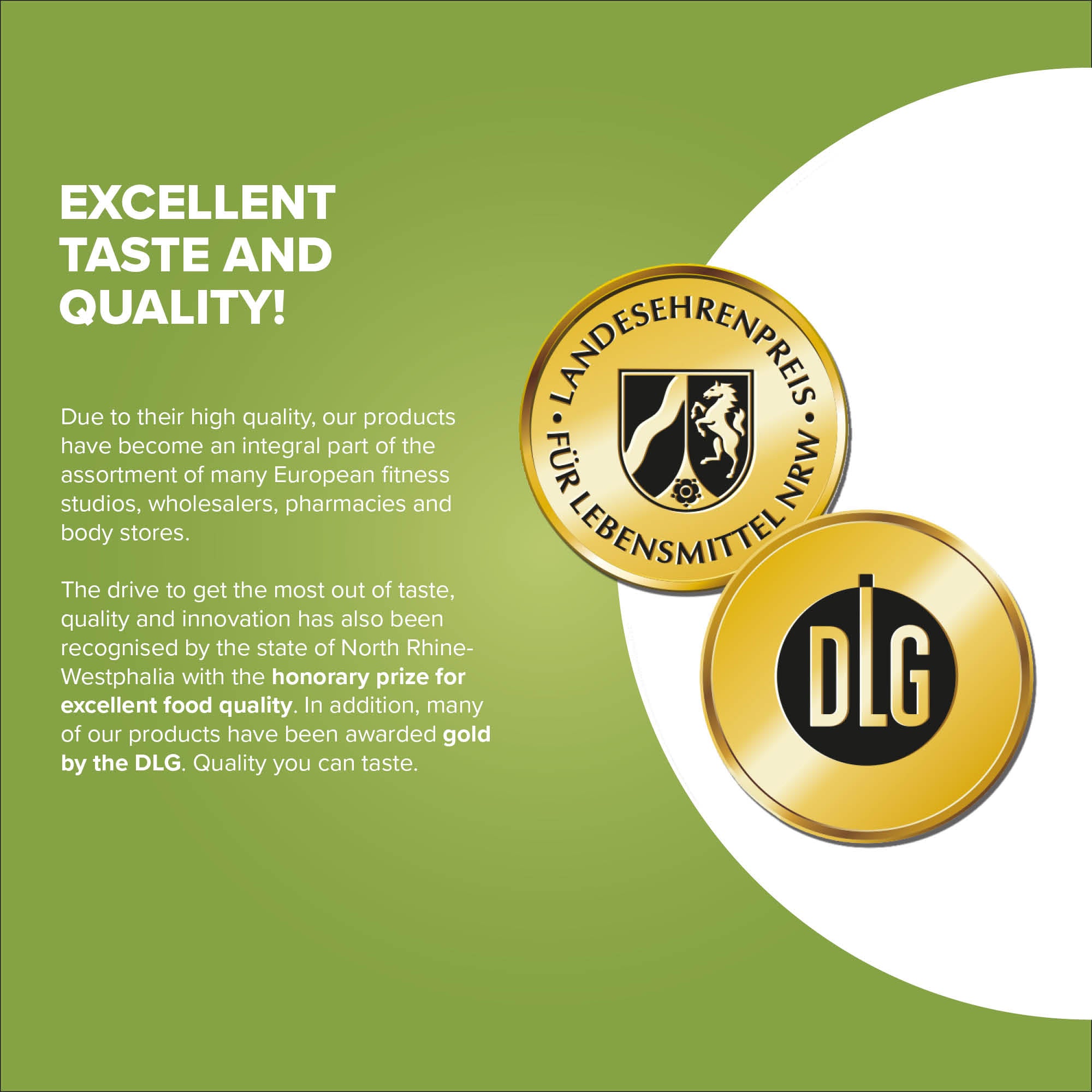 Available in many flavours – vegan, lactose-free & gluten-free. Perfect for dieting, fitness and a low calorie lifestyle. Simply mix 3 g of powder into quark, yoghurt or your favourite meal – and enjoy your guilt-free dessert moment.
