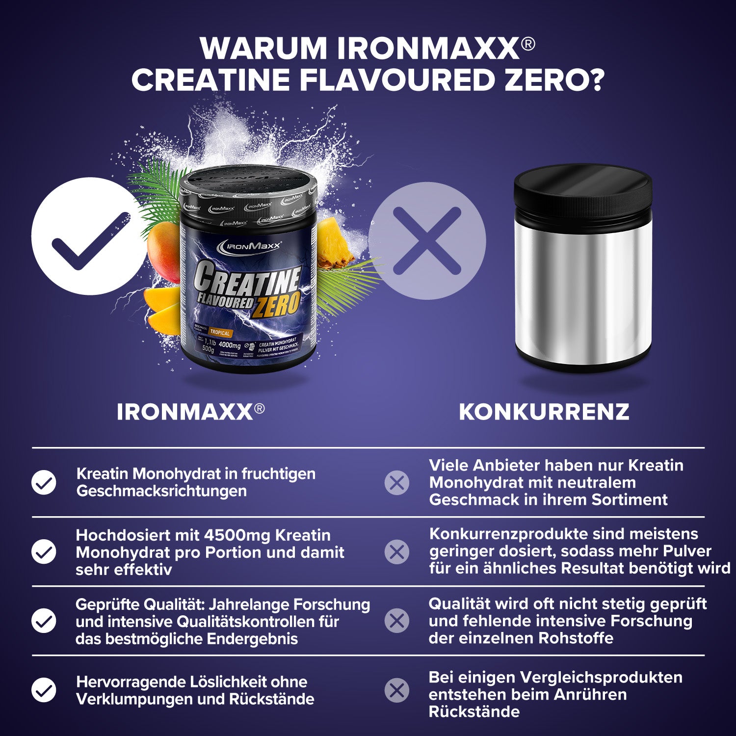 - The creatine is available in delicious fruity flavors of cherry and tropical.