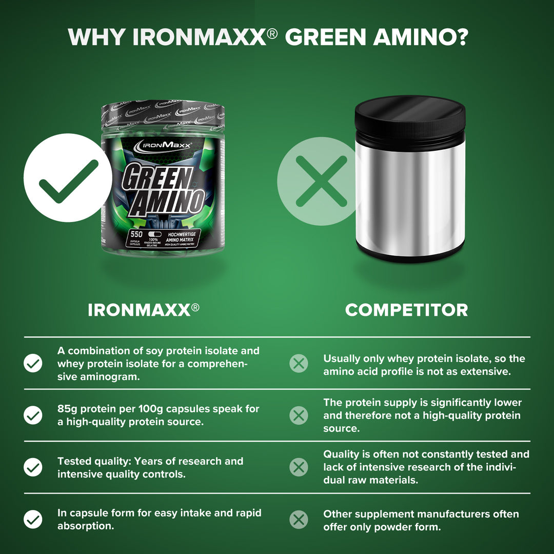 - Green Amino offers a high-quality and comprehensive amino acid matrix