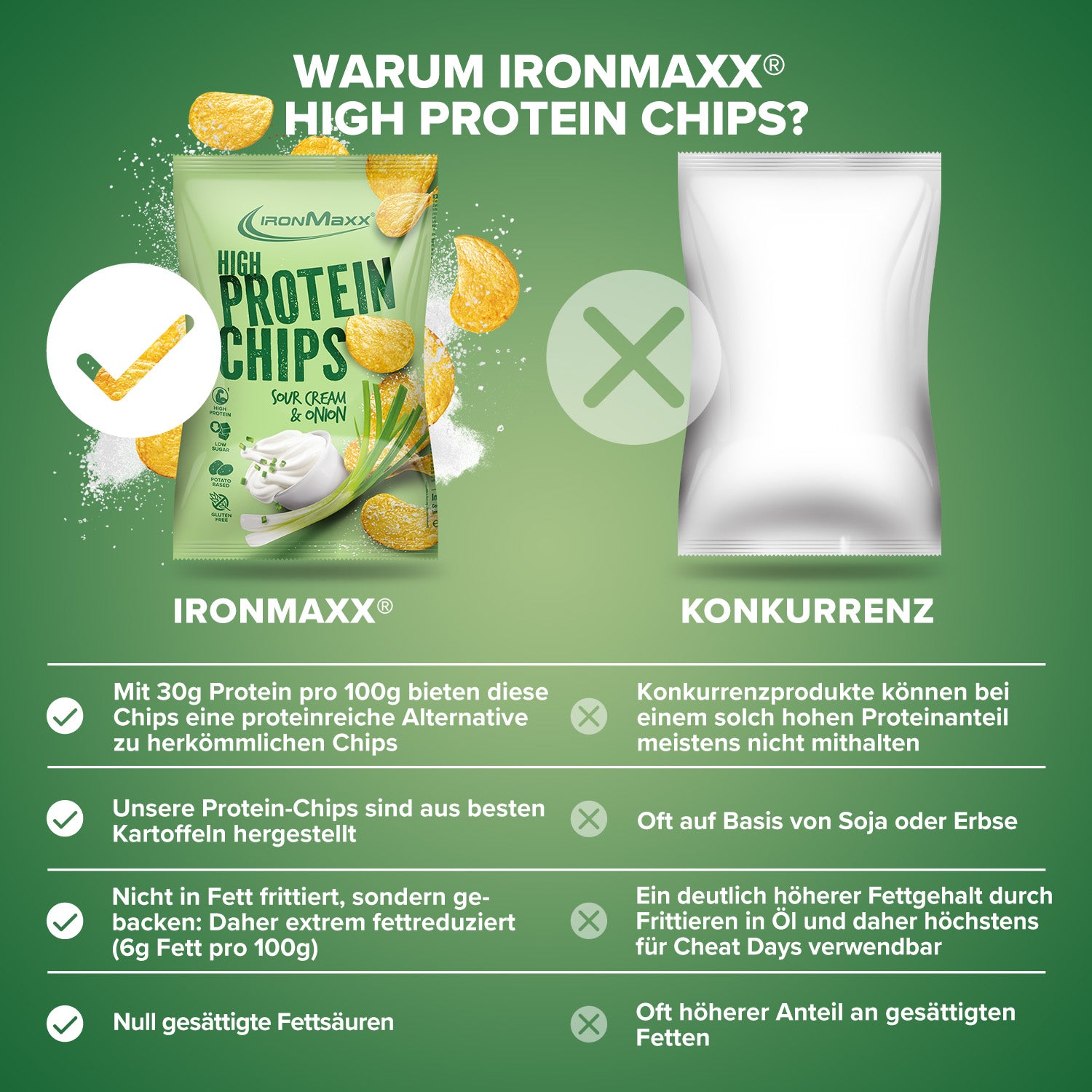 The IronMaxx® High Protein Potato Chips are the perfect fitness snack for anyone who wants full flavour while reaching their fitness goals. With a hefty 30 g of protein per 100 g, they effectively support muscle building – all without the guilt.