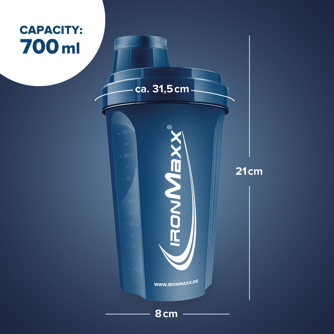 The classic IronMaxx® protein shaker is your reliable companion for creamy, lump-free shakes – anytime and anywhere. With a capacity of 700 ml, integrated sieve and precise measuring scale, every mixing ratio is perfectly achieved.