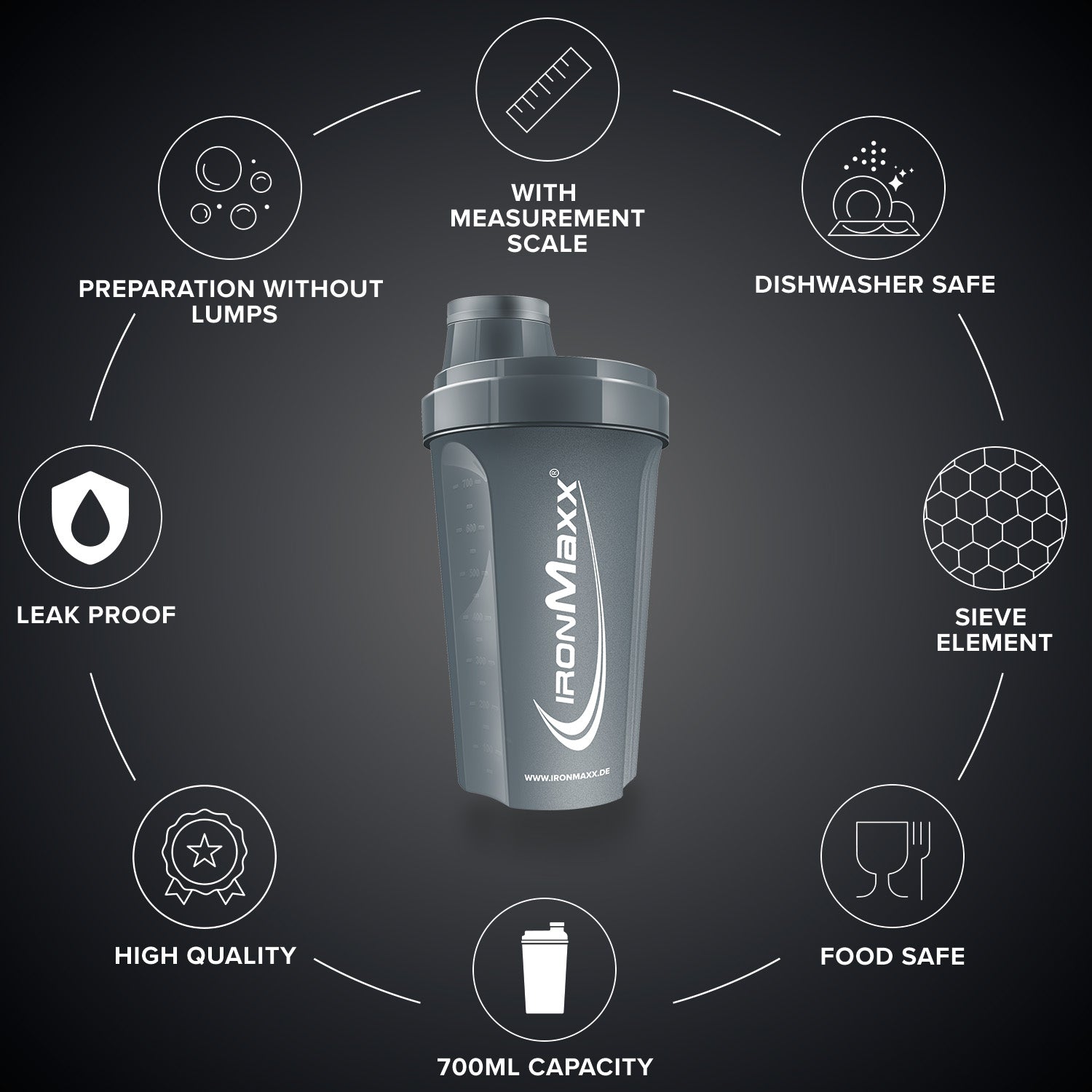 - Classic & functional: The IronMaxx® Shaker offers everything a high-quality protein shaker needs – simple, practical and effective.