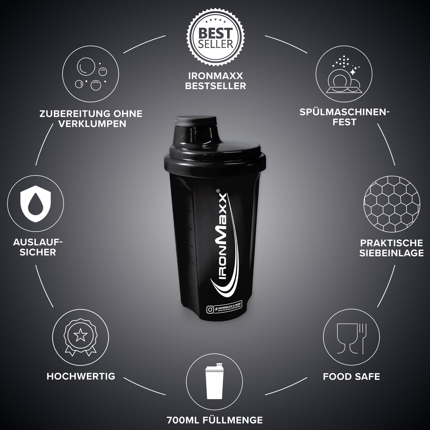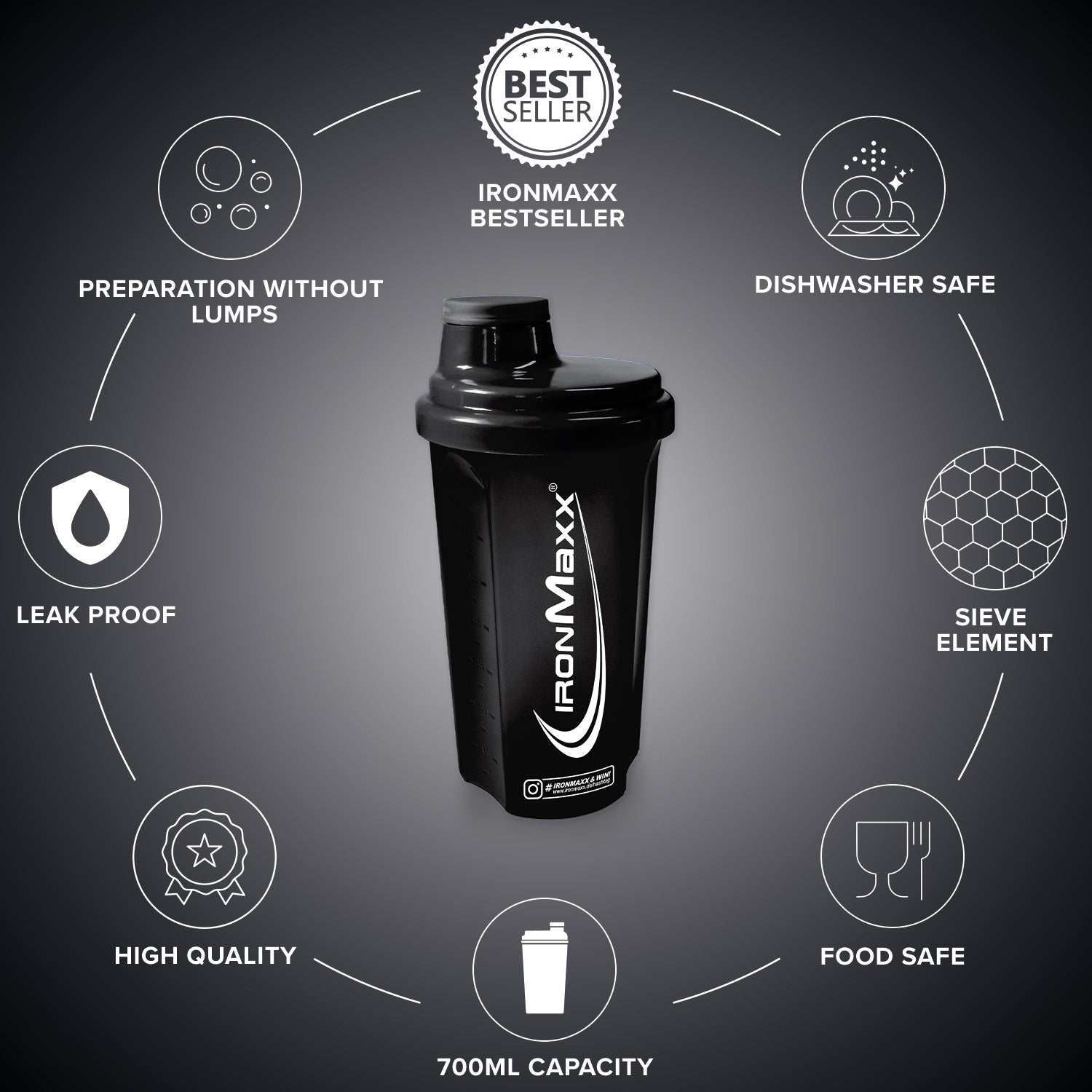 - The IronMaxx® shaker allows for the preparation of shakes whether with water, milk, or plant-based milk alternatives