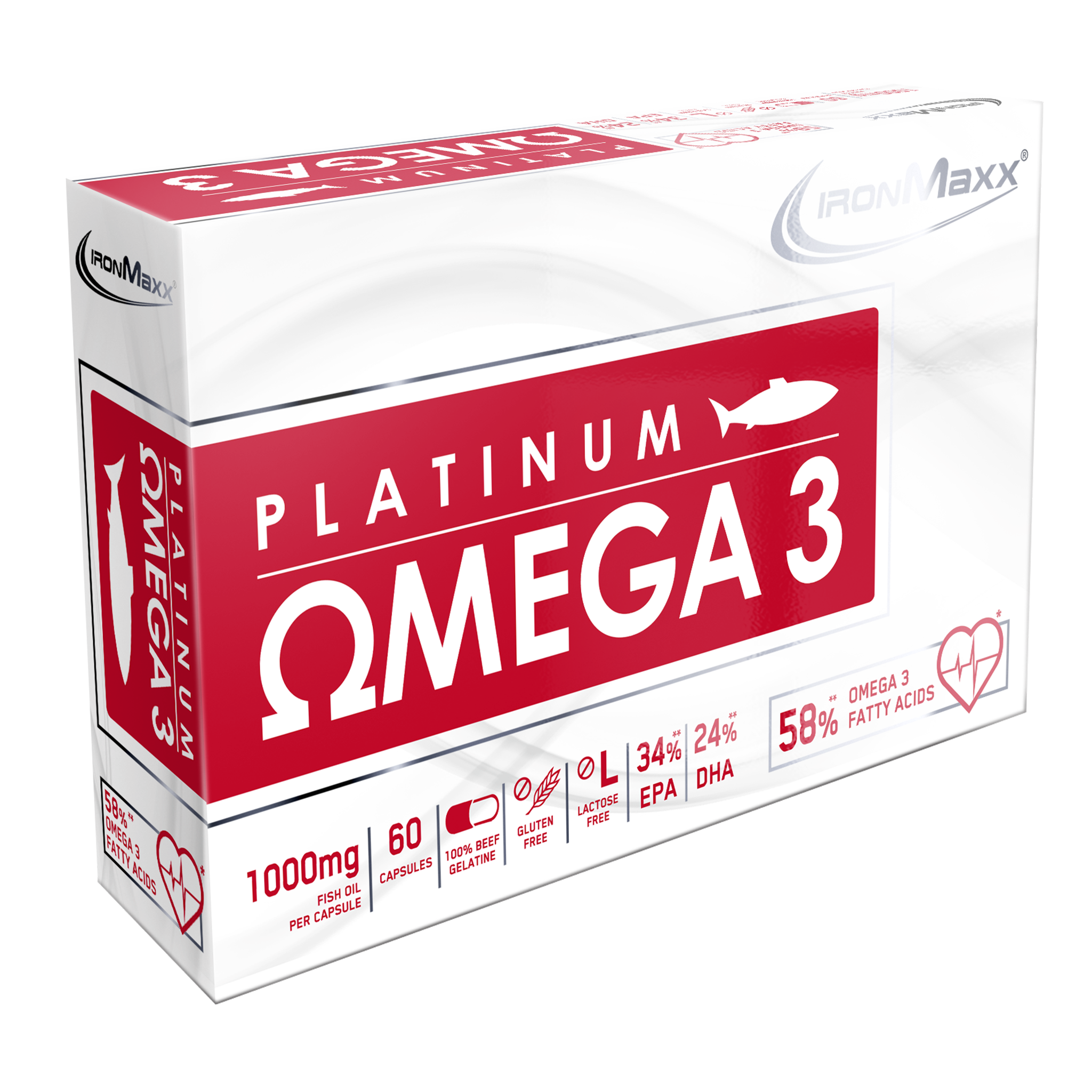 IronMaxx® Platinum Omega 3 provides you with 1000 mg of fish oil per capsule – completely free from artificial additives. Each softgel delivers 340 mg EPA and 240 mg DHA, two valuable omega-3 fatty acids that are essential components of cell membranes.
