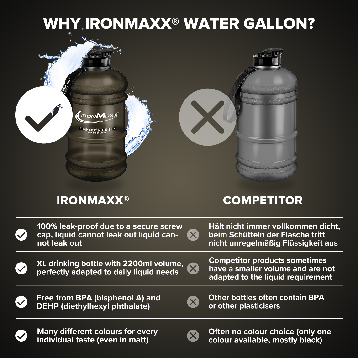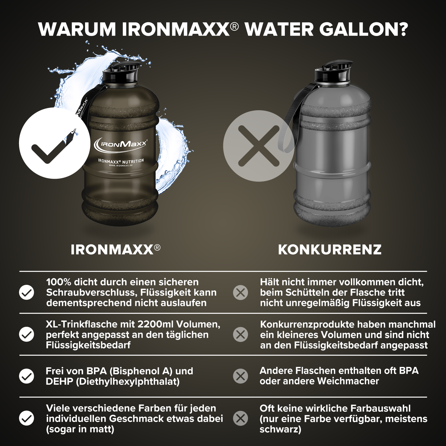 - Your motivator to drink enough fluids: The Water Gallon from IronMaxx®!