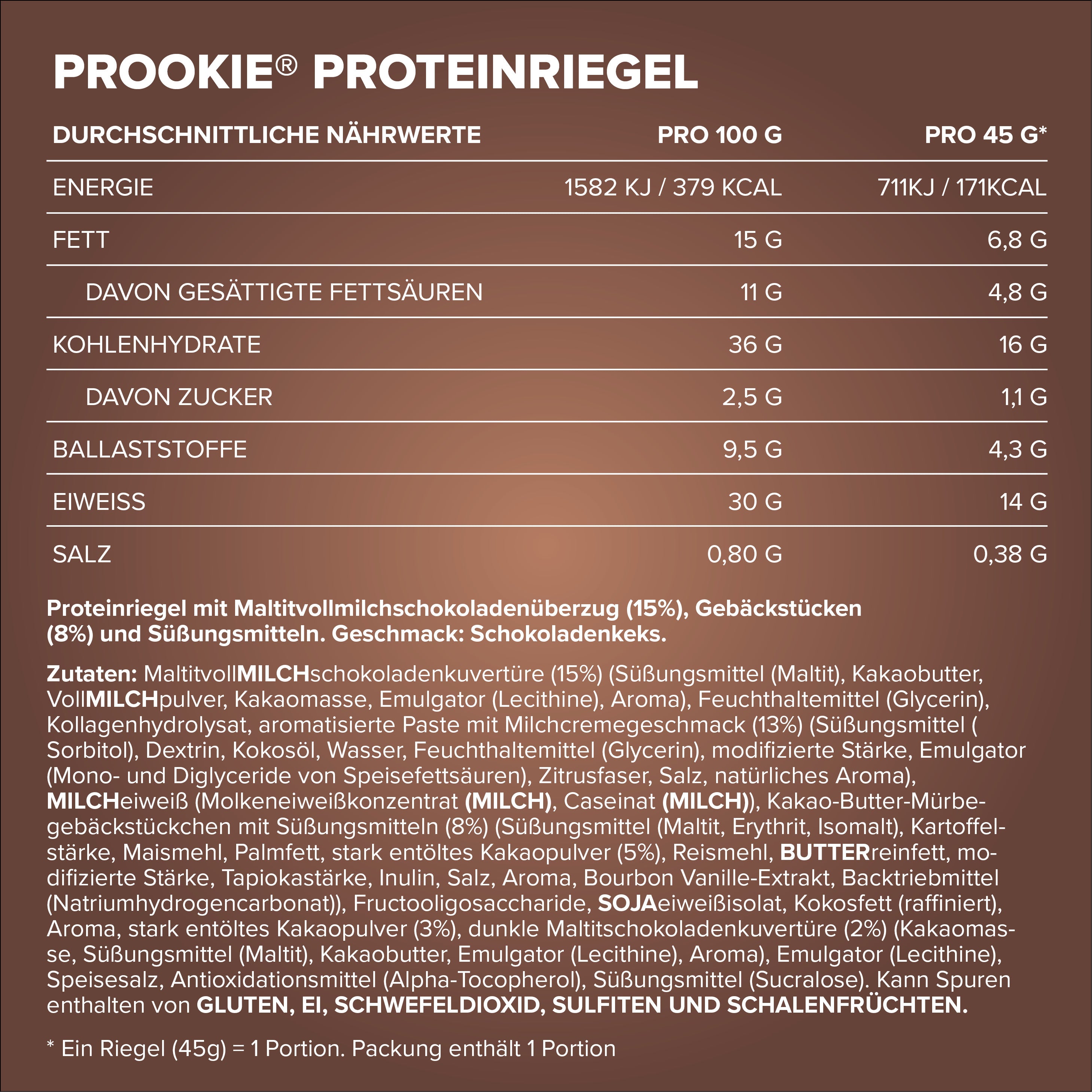 - High Protein: With 30 g of protein per 100 g, the Prookie® is the perfect snack for muscle growth, maintenance and recovery – ideal for athletes and active lifestyles.