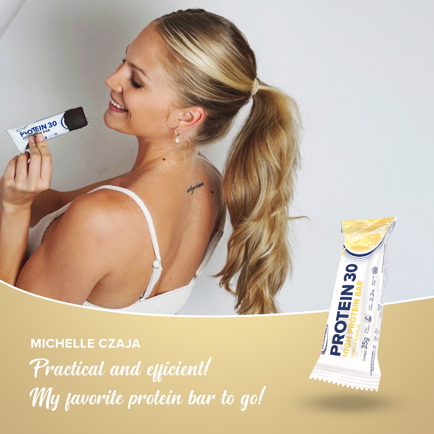 - High protein content: Contains 30% protein per 35 g bar – ideal for muscle building and recovery.
