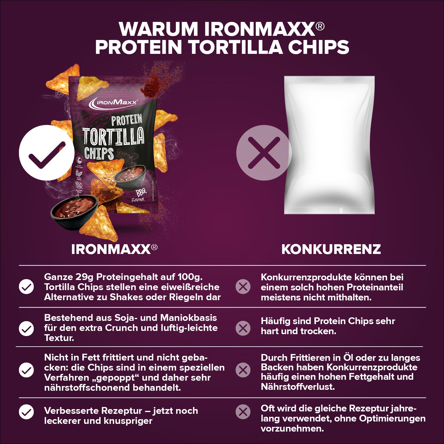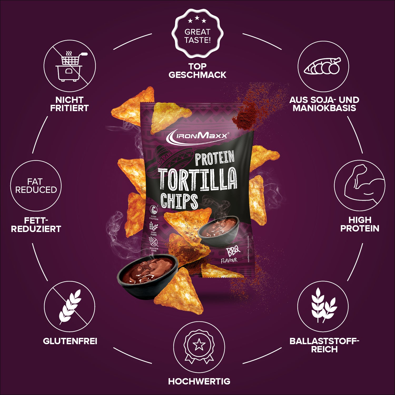 - Flavourful & crispy: IronMaxx® Protein Tortilla Chips combine bold seasoning with a satisfying crunch – perfect for relaxing evenings, after training or as a snack in between.