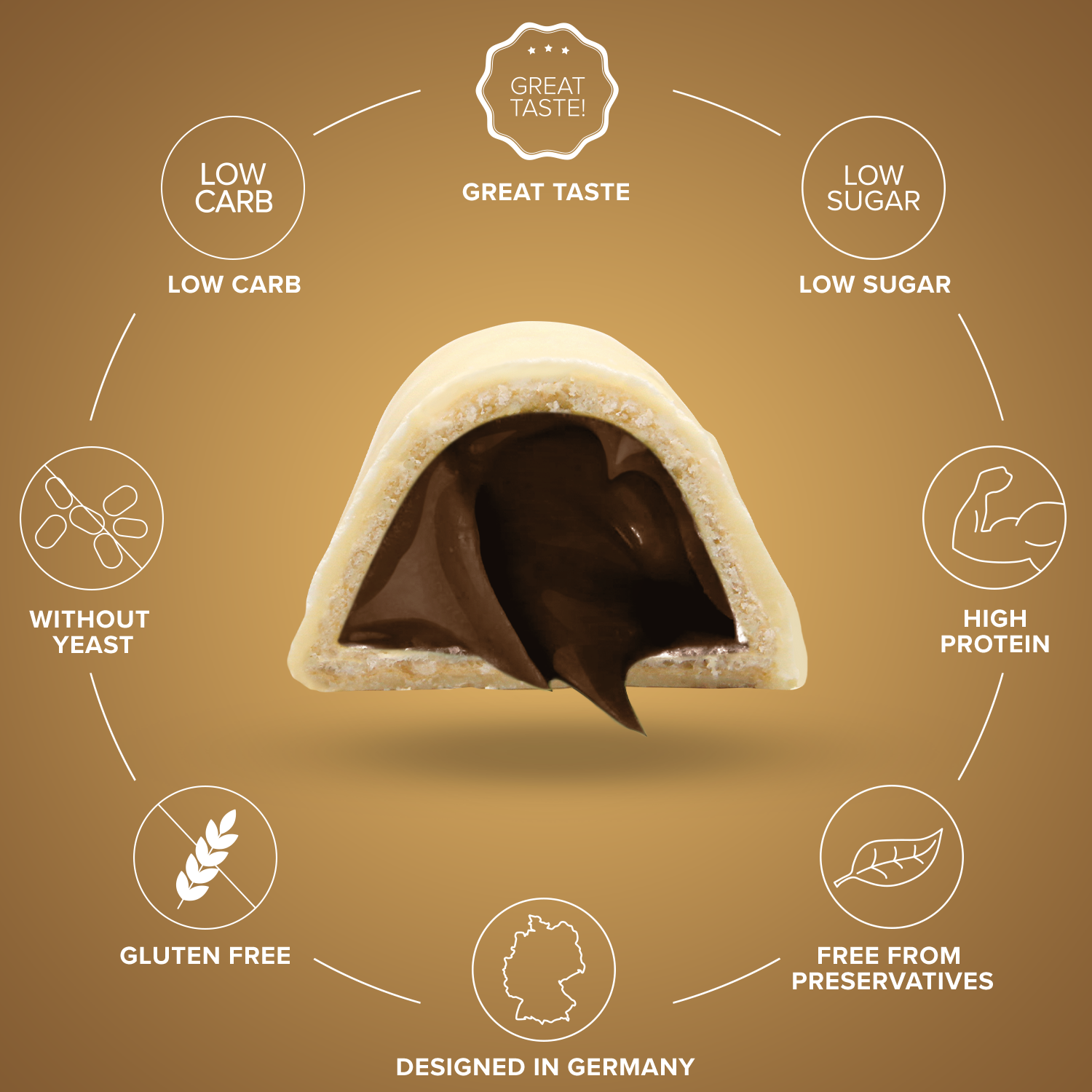 - 6 flavours of enjoyment: Exciting varieties with a crunchy wafer & creamy protein cream.