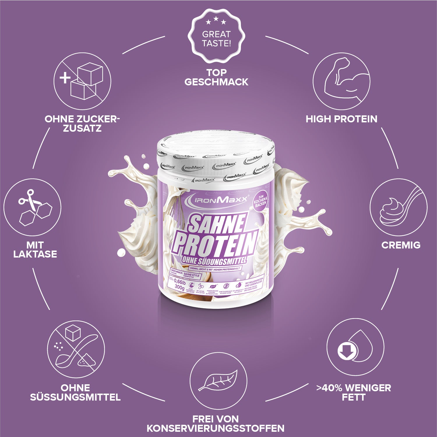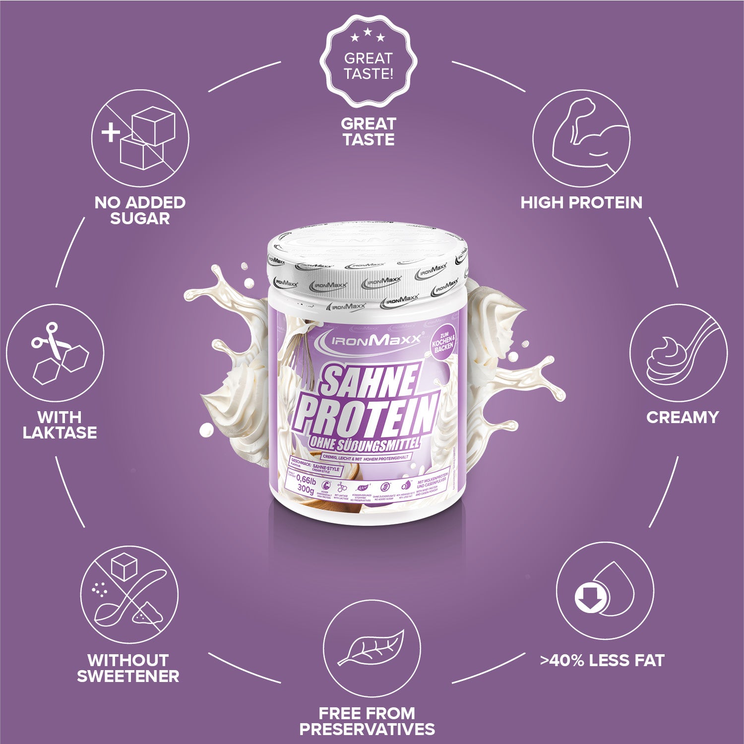 Whether for savory sauces, creamy soups or delicious casseroles – the Cream Protein delivers full flavor and a pleasant consistency, completely guilt-free. Ideal for athletes, figure-conscious individuals or anyone looking to give their dishes a protein-rich and low-fat boost. With IronMaxx®, you bring enjoyment and functionality into perfect balance – cooking has never been this easy!