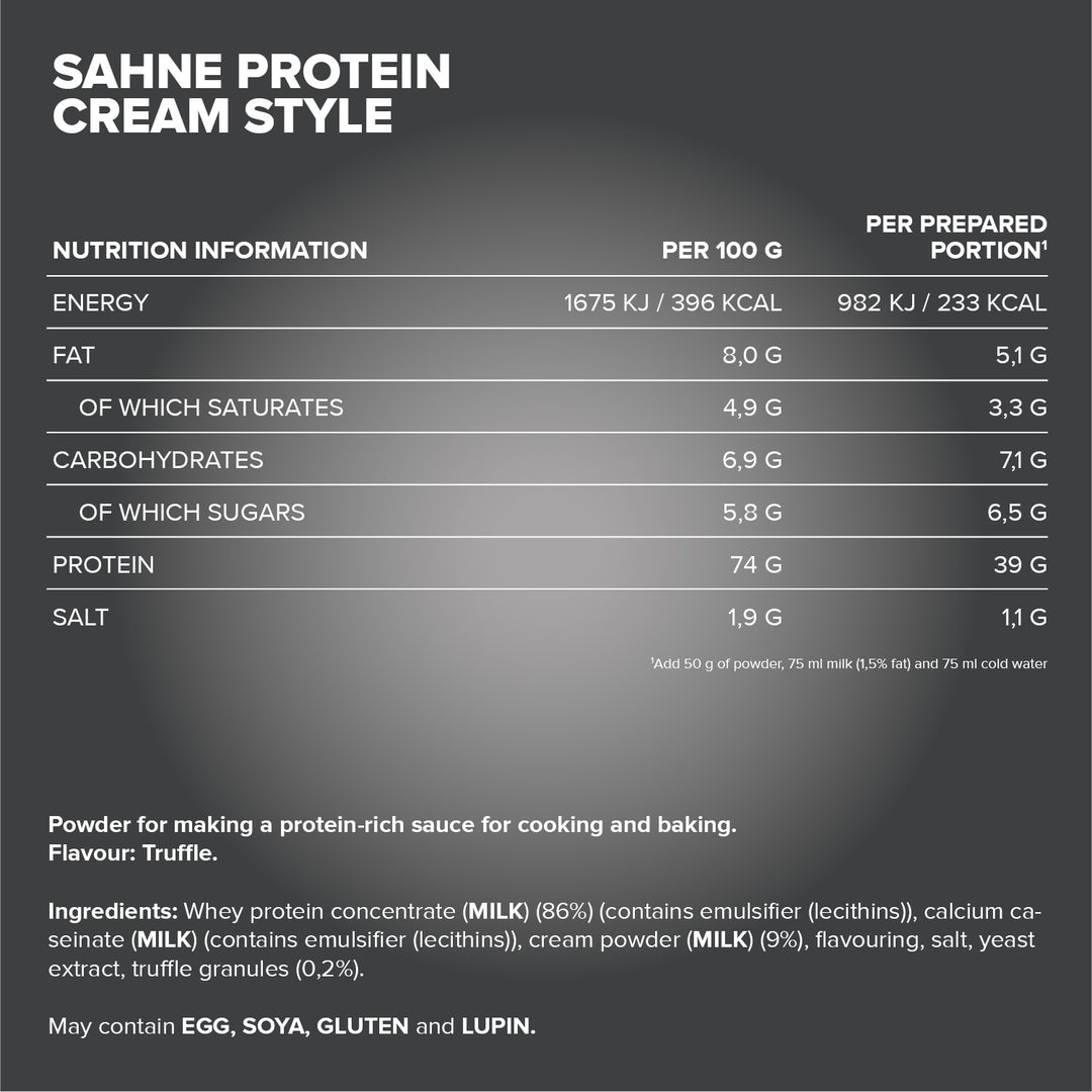 - Fettreduziert: Zubereitet enthält das Sahne Protein bis zu 60 % weniger Fett als herkömmliche Kochsahne – ideal für eine kalorienbewusste Ernährung.