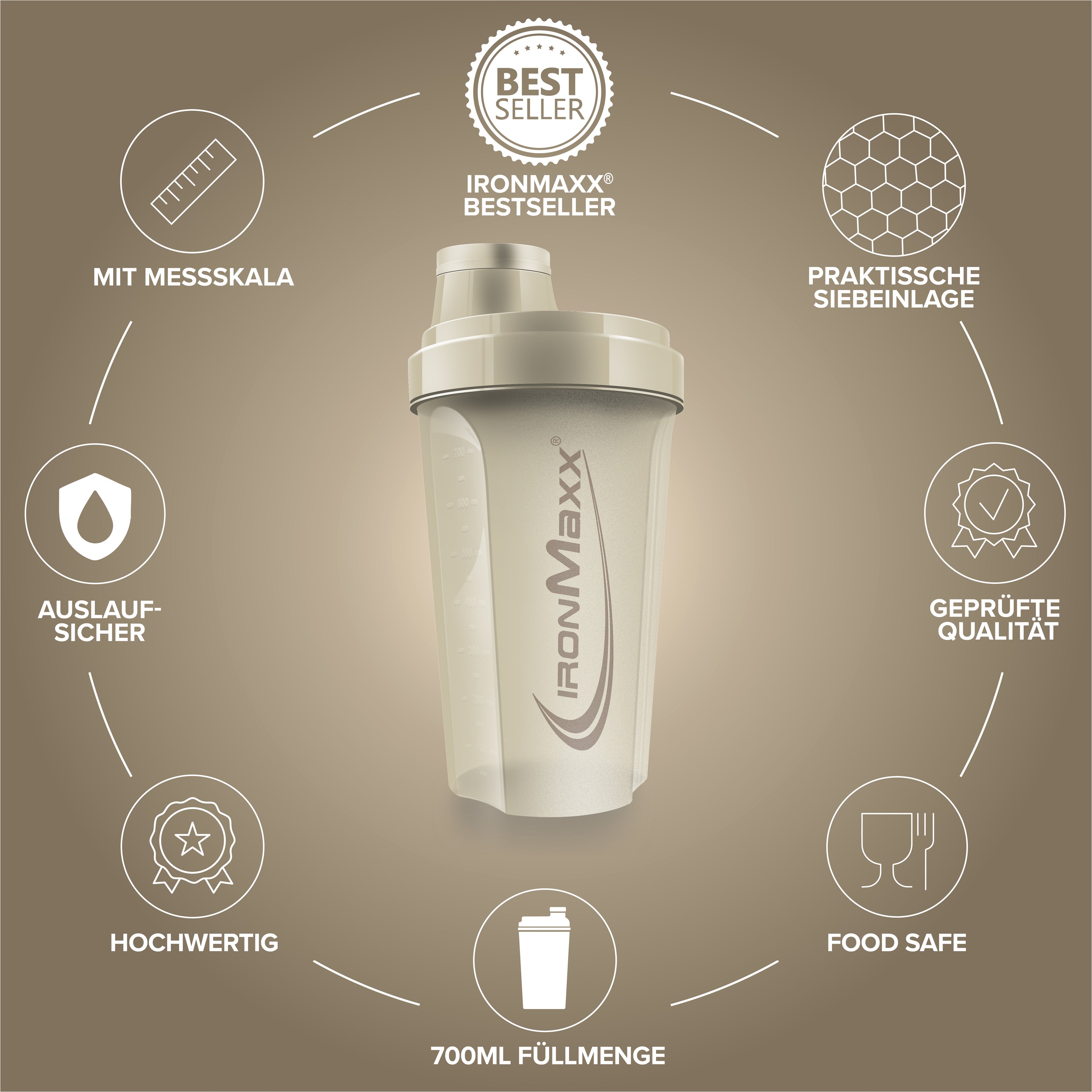 - The IronMaxx® shaker allows for the preparation of shakes whether with water, milk, or plant-based milk alternatives