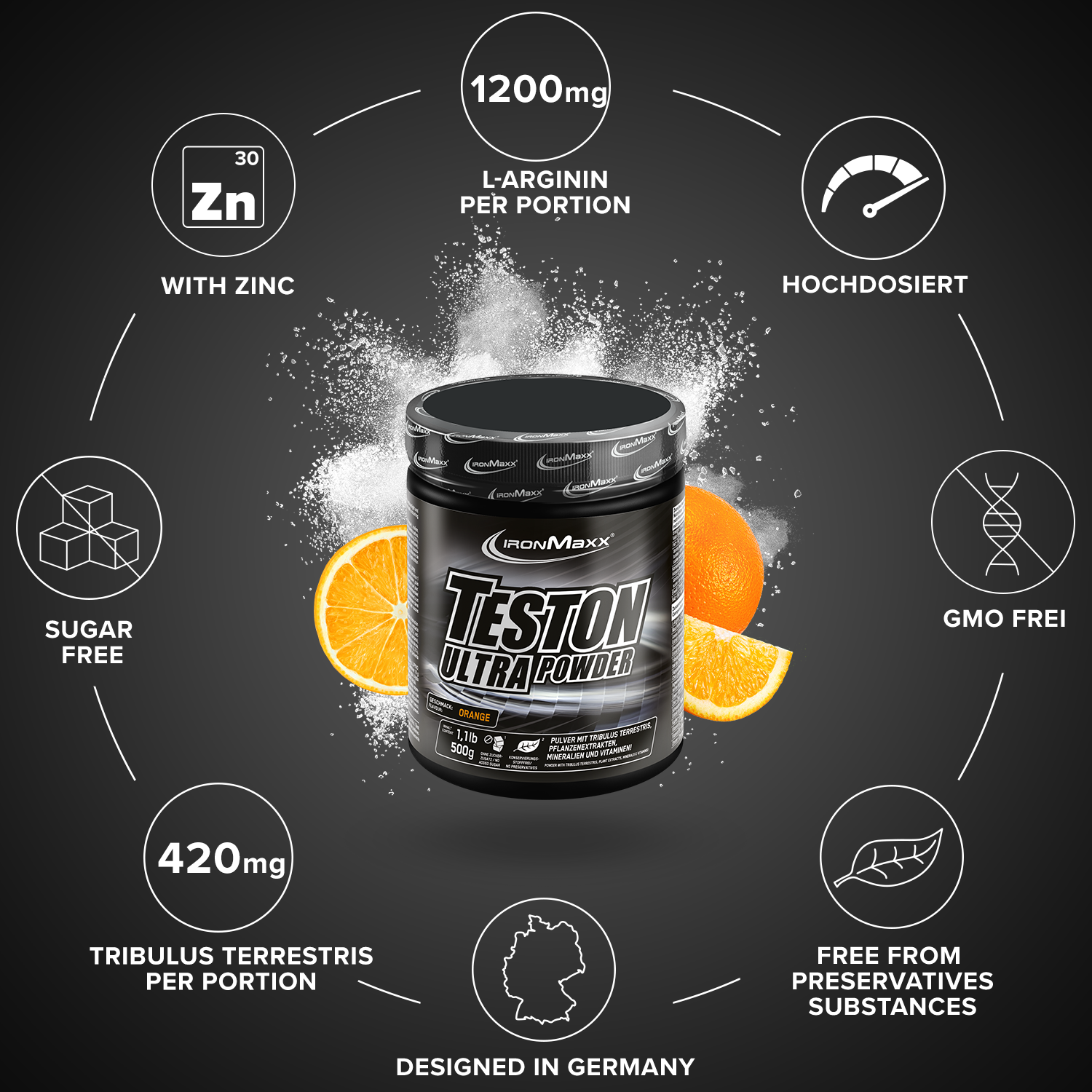 - Teston Ultra Powder by IronMaxx® is a training booster with plant extracts, minerals, and vitamins.