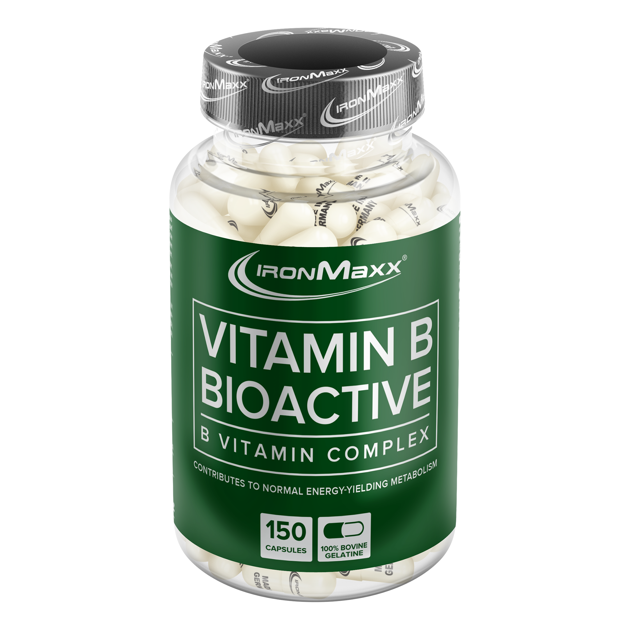 IronMaxx® Vitamin B Bioactive delivers the full B-vitamin complex in a highly bioavailable form – perfect for athletes and anyone facing physical or mental stress. Just one capsule a day provides up to 300% of your daily needs, helping to support energy metabolism, nervous system function, and mental performance. With essential vitamins like B1, B6, B12, niacin, folic acid, and pantothenic acid, this powerful blend also helps reduce fatigue and supports a healthy immune system.