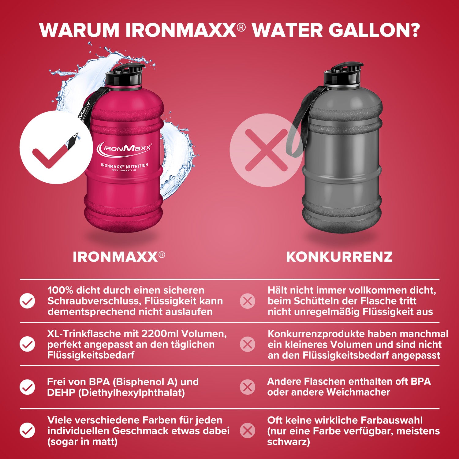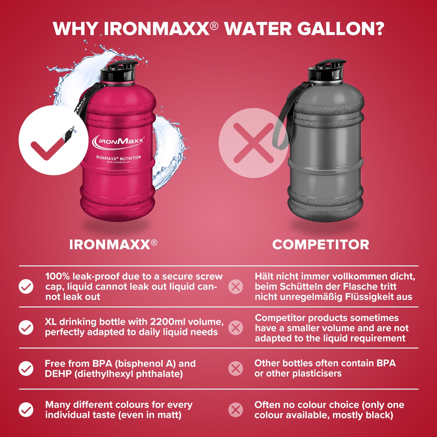 - Your motivator to drink enough fluids: The Water Gallon from IronMaxx®!