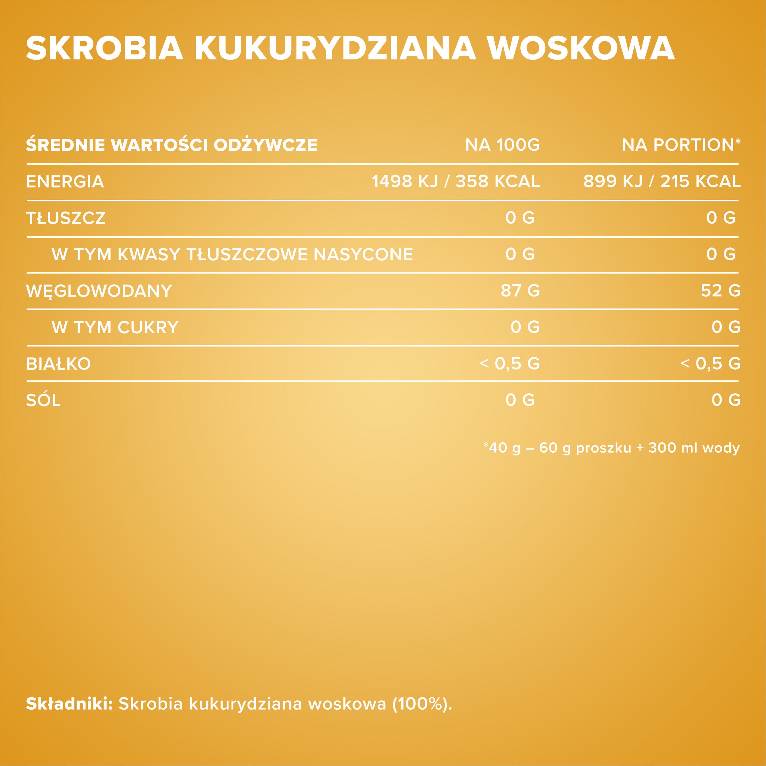 - 100g of Waxy Maize Starch corresponds to 358kcal!