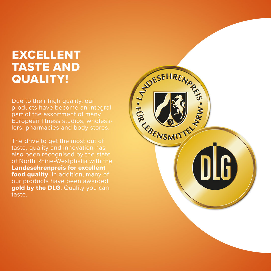 The recommended daily intake must not be exceeded! Keep out of reach of children! Store protected from heat, moisture, and sunlight. Proteins contribute to an increase in muscle mass. A balanced and varied diet and a healthy lifestyle are important. According to trade custom.