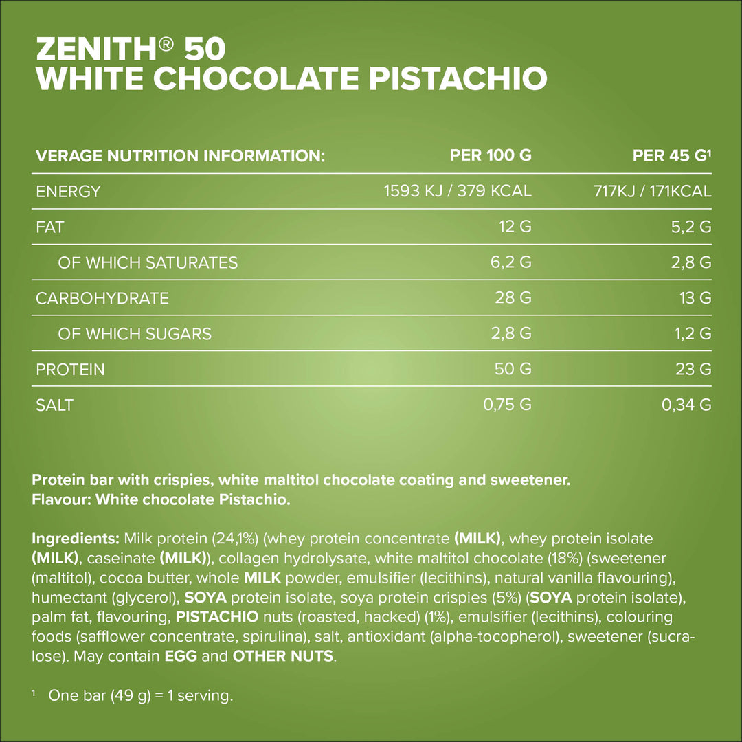 ZENITH 50 Protein Bar (16x45g) - White Pistachio Crisp