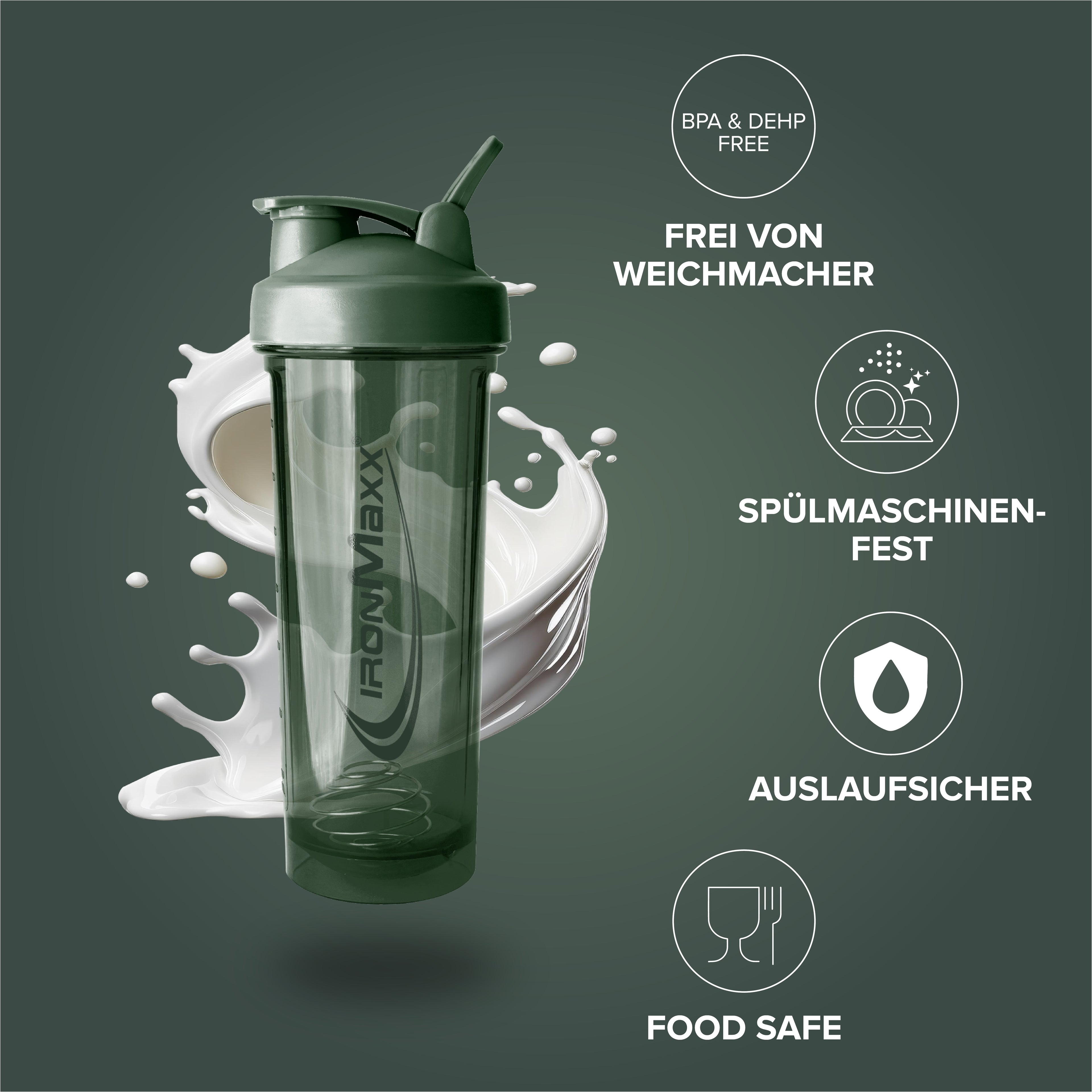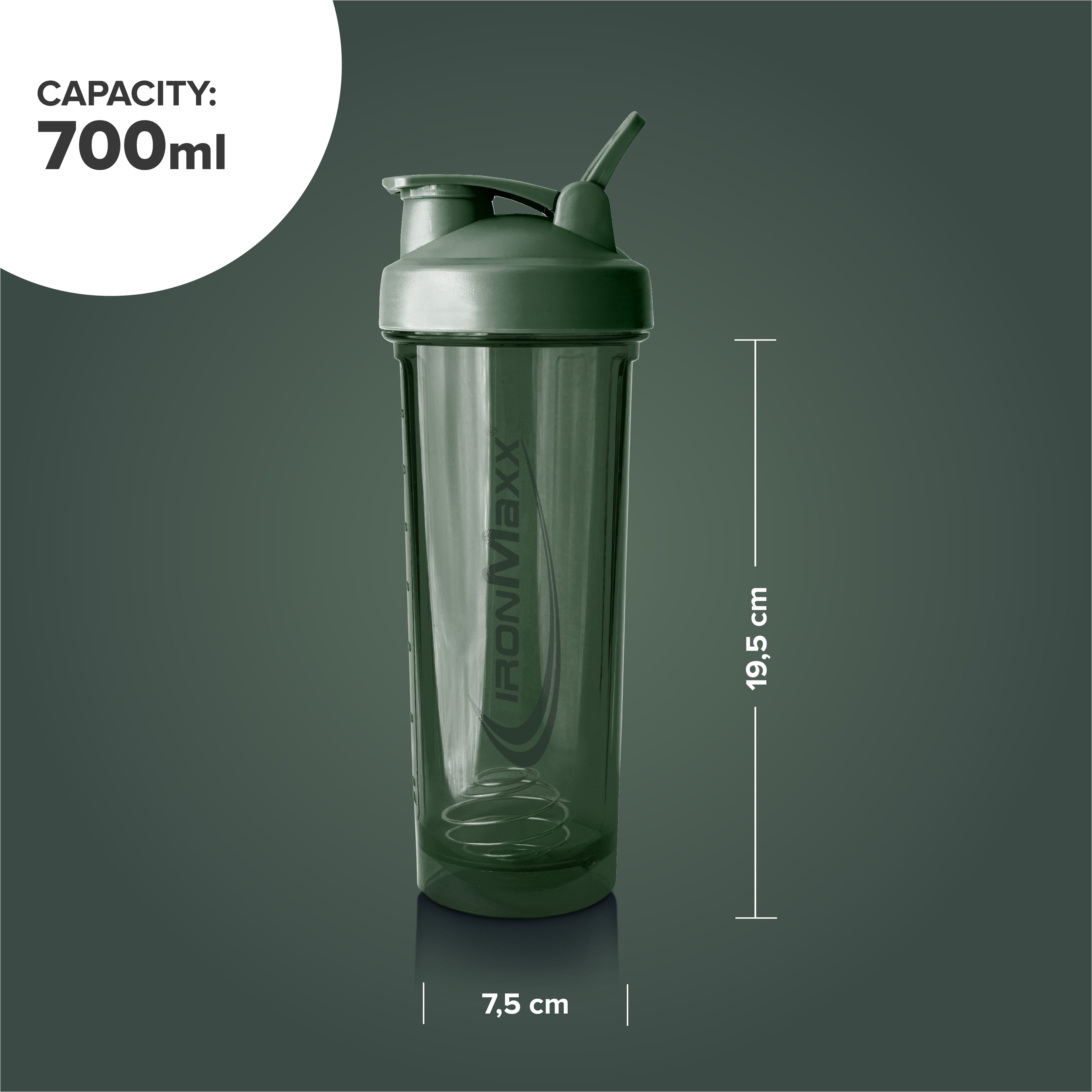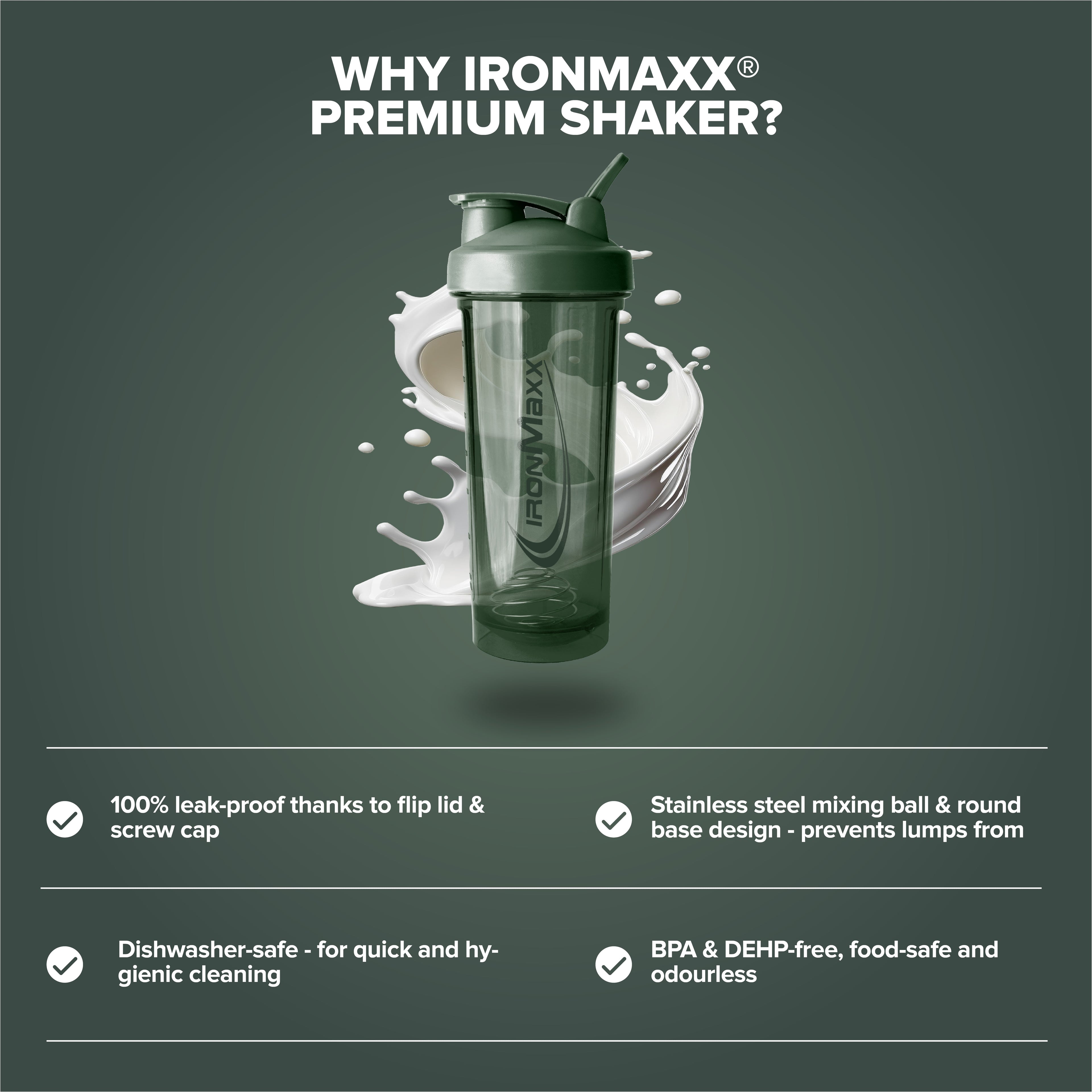 The IronMaxx® Premium Shaker (700 ml) combines functionality, sleek design, and everyday convenience. With its integrated mesh ball, you’ll enjoy perfectly smooth shakes without the need for a blender. The precise 100 ml measurement scale and secure screw lid ensure mess-free mixing—at the gym, on the go, or in the office. Made from durable, BPA-free AS+PP plastic, this lightweight shaker is dishwasher-safe and easy to clean. Ideal for protein shakes, BCAAs, or isotonic drinks—your go-to solution for smooth mixing anytime, anywhere.