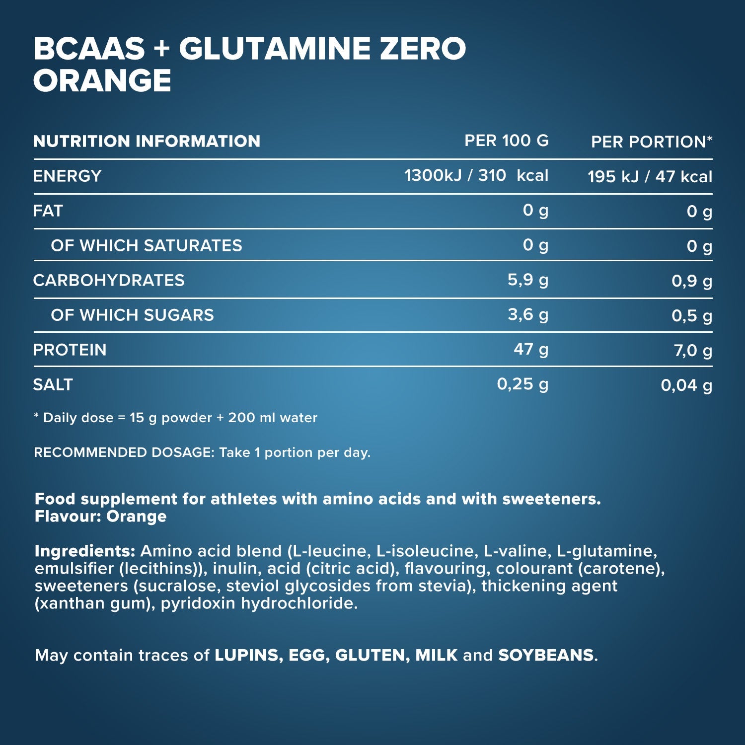 - Combinaison optimale 2:1:1 de BCAA, de poudre de glutamine et