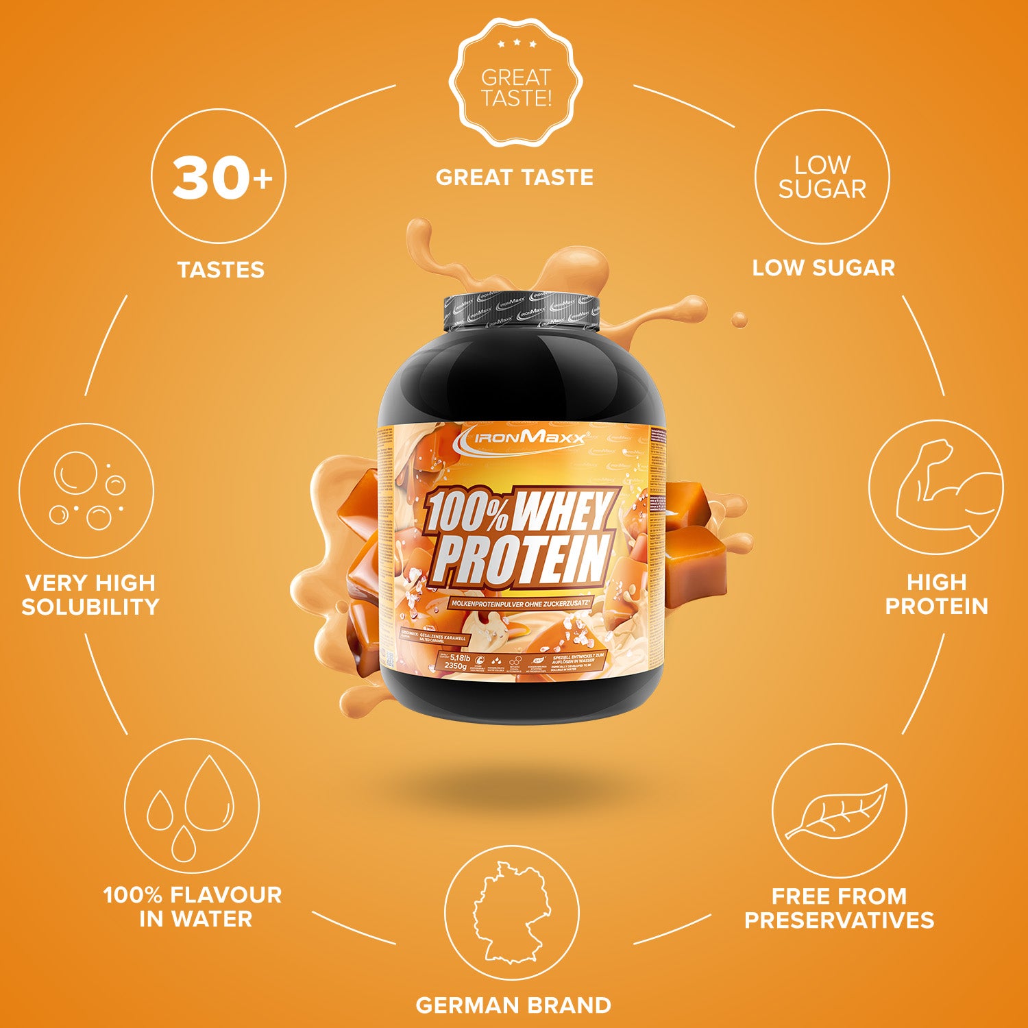 IronMaxx® 100% Whey Protein è tra i più popolari Proteinfrullati per Sviluppo muscolare, rigenerazione E Fasi della dietaCon fino all'80% di proteine, un profilo aminoacidico completo (incluso...) BCAA e EAACon il suo gusto cremoso, è il compagno ideale per la tua routine quotidiana di fitness.