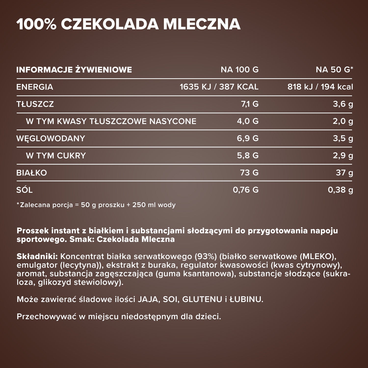 Aggiungere 50 g di polvere (circa 4 cucchiai colmi) e 250 ml di acqua fredda in uno shaker e agitare per 20 secondi. Bere fino a 4 porzioni al giorno. Si consiglia di consumarlo prima di attività sportive o competizioni, subito dopo l'allenamento e prima di coricarsi.