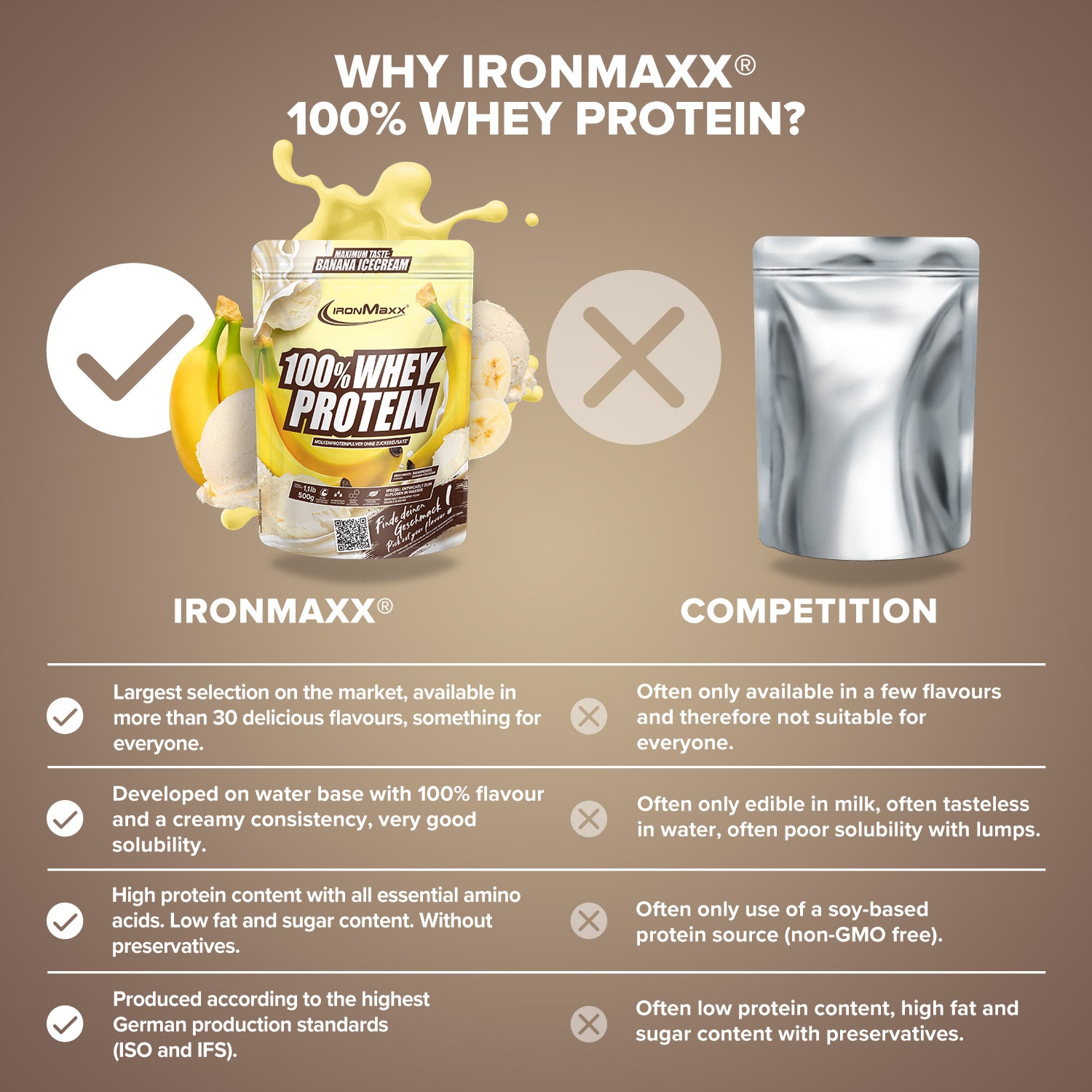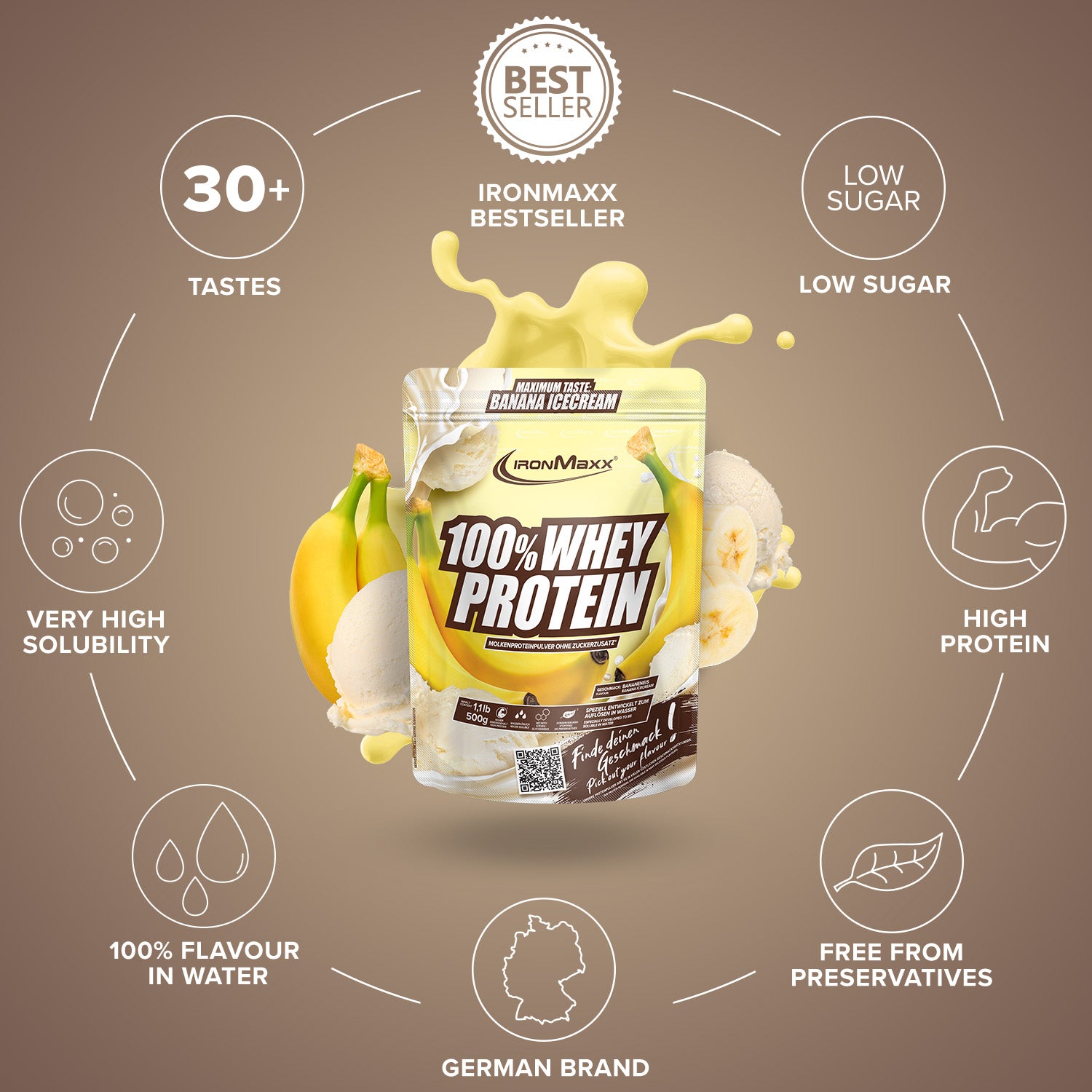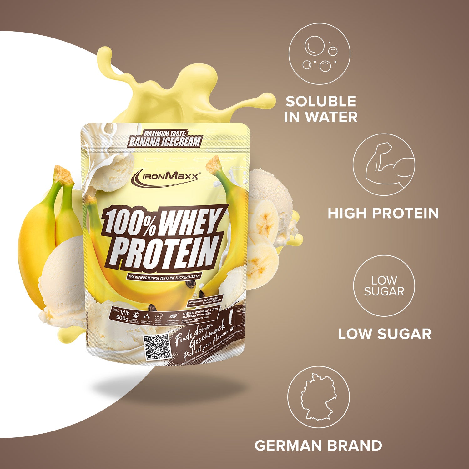 IronMaxx® 100% wei-eiwit is een van de populairste eiwitshakes voor Spieropbouw, regeneratie En DieetfasenMet tot wel 80% eiwit en een compleet aminozuurprofiel (inclusief BCAA's En EAA's) en de romige smaak maken het de ideale partner voor je dagelijkse fitnessroutine.