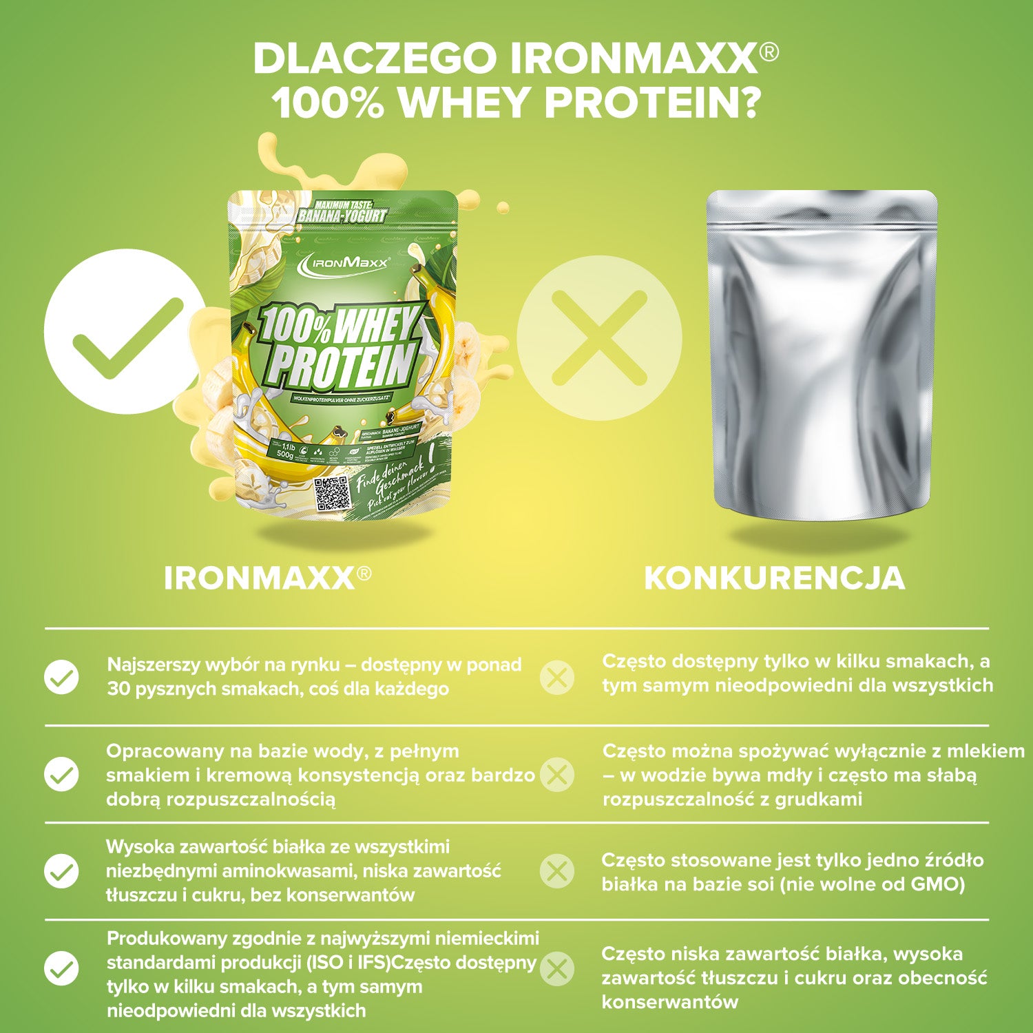 IronMaxx® 100% wei-eiwit is een van de populairste eiwitshakes voor Spieropbouw, regeneratie En DieetfasenMet tot wel 80% eiwit en een compleet aminozuurprofiel (inclusief BCAA's En EAA's) en de romige smaak maken het de ideale partner voor je dagelijkse fitnessroutine.