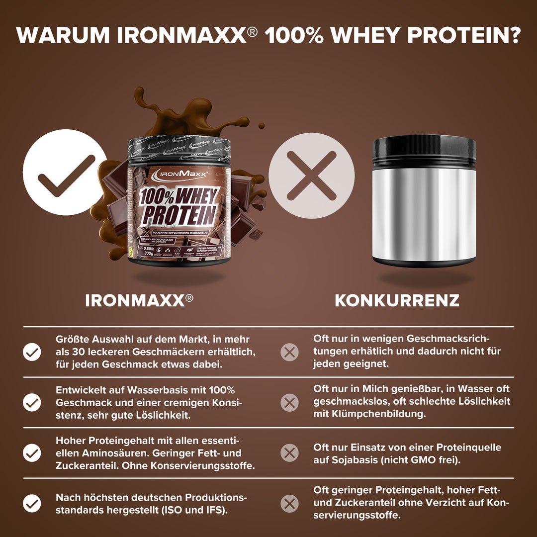 IronMaxx® 100% Whey Protein gehört zu den beliebtesten Eiweißshakes für Muskelaufbau, Regeneration und Diätphasen. Mit bis zu 80 % Eiweiß, einem vollständigen Aminosäurenprofil (inklusive BCAAs und EAAs) sowie einem cremigen Geschmack ist es der ideale Begleiter für deinen Fitnessalltag.