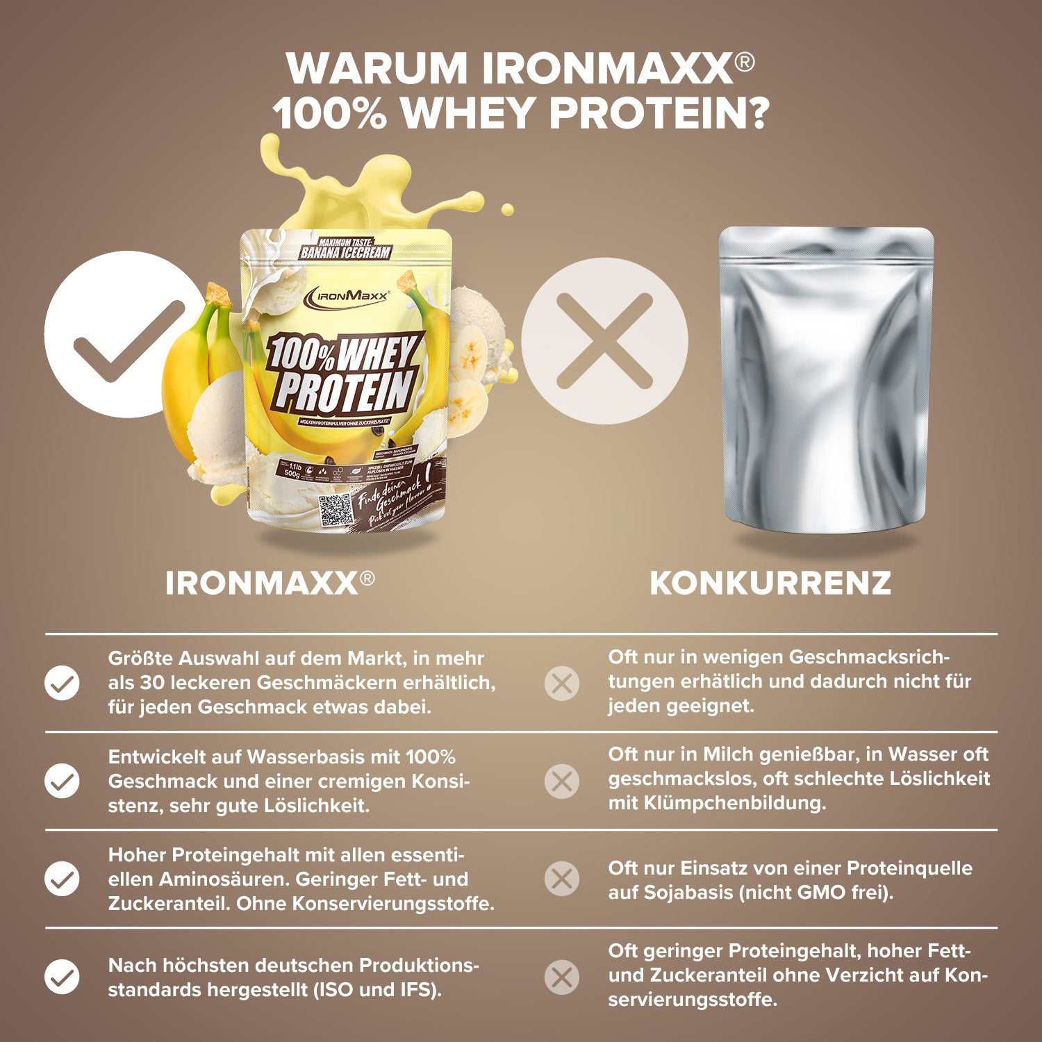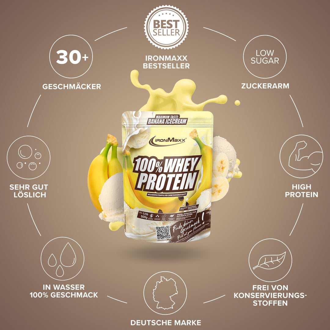 IronMaxx® 100% Whey Protein gehört zu den beliebtesten Eiweißshakes für Muskelaufbau, Regeneration und Diätphasen. Mit bis zu 80 % Eiweiß, einem vollständigen Aminosäurenprofil (inklusive BCAAs und EAAs) sowie einem cremigen Geschmack ist es der ideale Begleiter für deinen Fitnessalltag.