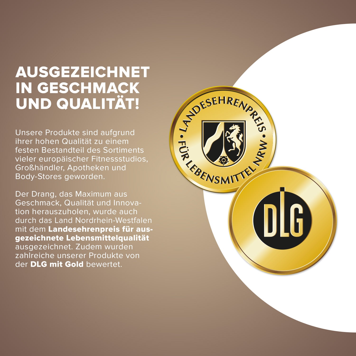 Die angegebene empfohlene tägliche Verzehrmenge darf nicht überschritten werden! Außerhalb der Reichweite von Kindern lagern! Vor Wärme, Feuchtigkeit und Sonneneinstrahlung geschützt aufbewahren. Proteine tragen zu einer Zunahme an Muskelmasse bei. Eine ausgewogene und abwechslungsreiche Ernährung und eine gesunde Lebensweise sind wichtig. Laut Handelsbrauch.