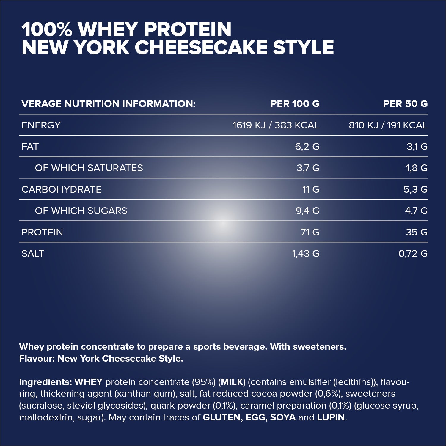 100% Whey Protein - 900g Dose - New York Cheesecake Style