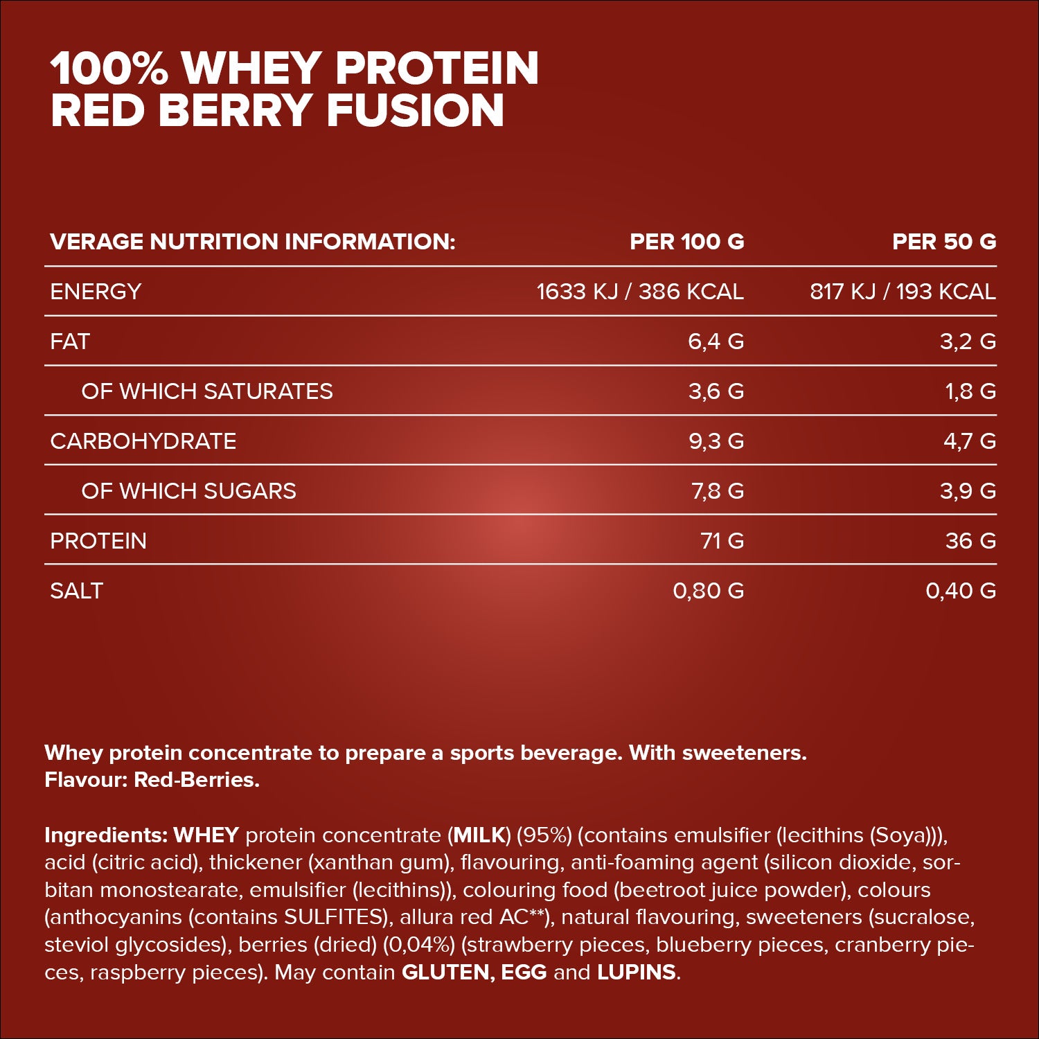100% Whey Protein - 900g Dose - Red Berry Fusion