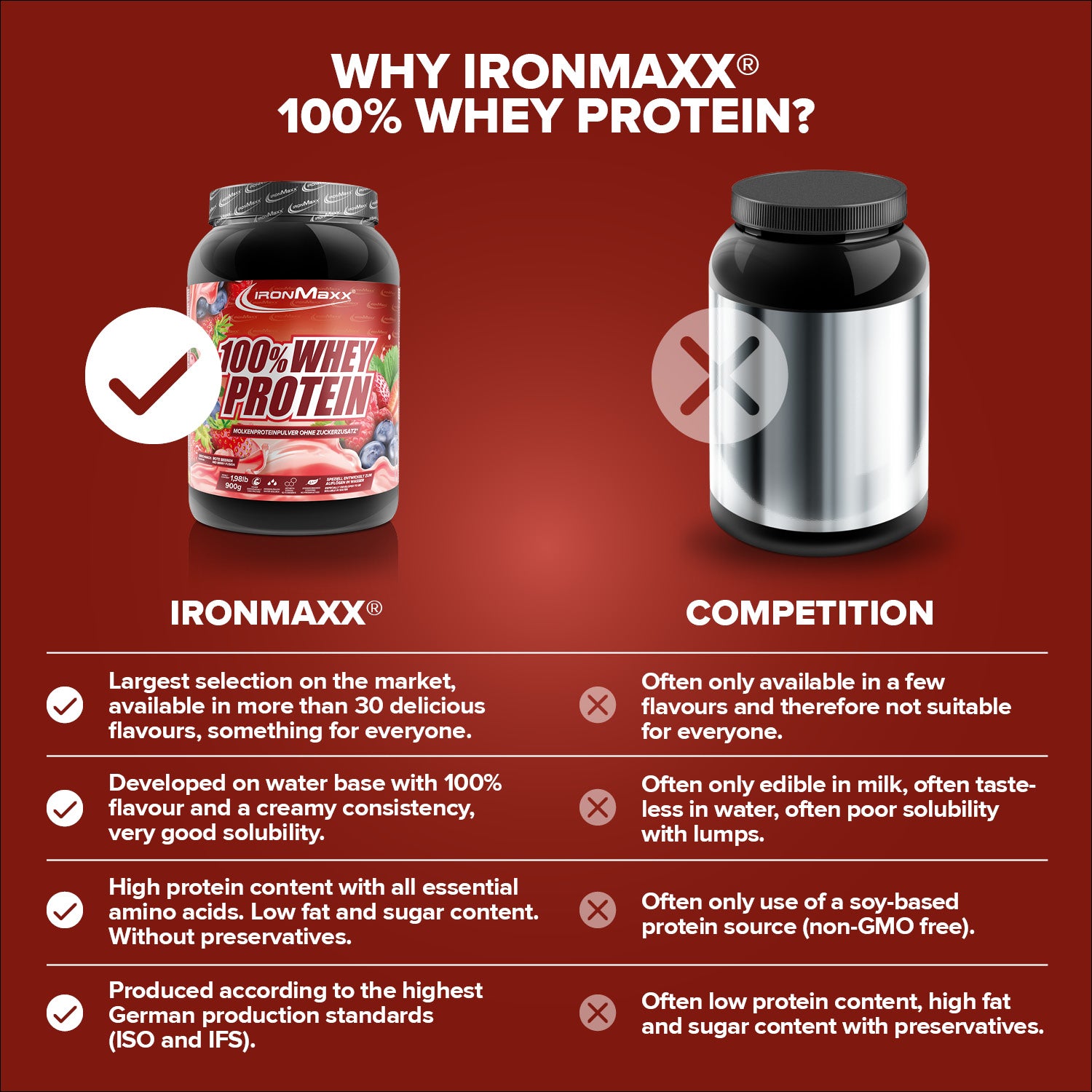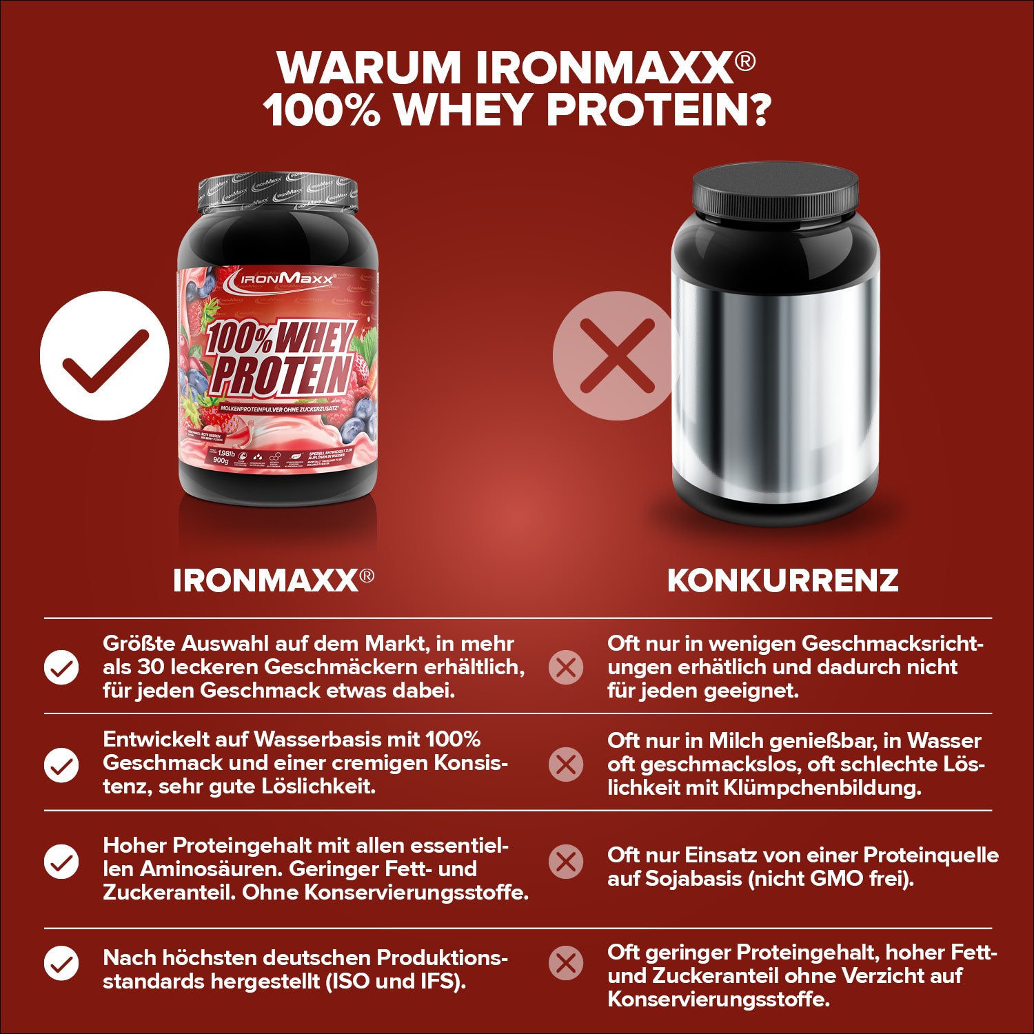 IronMaxx® 100% Whey Protein zählt zu den beliebtesten Proteinshakes für Muskelaufbau, Regeneration und Diätphasen. Mit bis zu 80 % Eiweiß, einem kompletten Aminosäurenprofil (inkl. BCAAs & EAAs) und cremigem Geschmack ist es der ideale Begleiter für deinen Fitnessalltag.