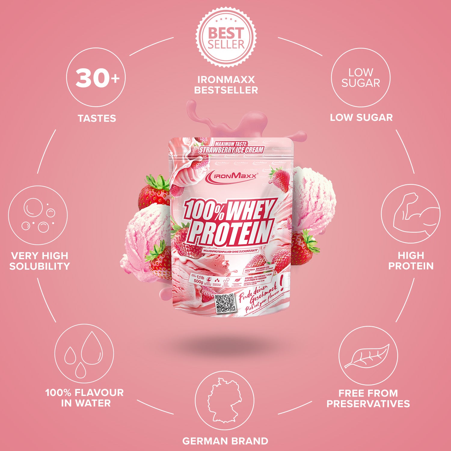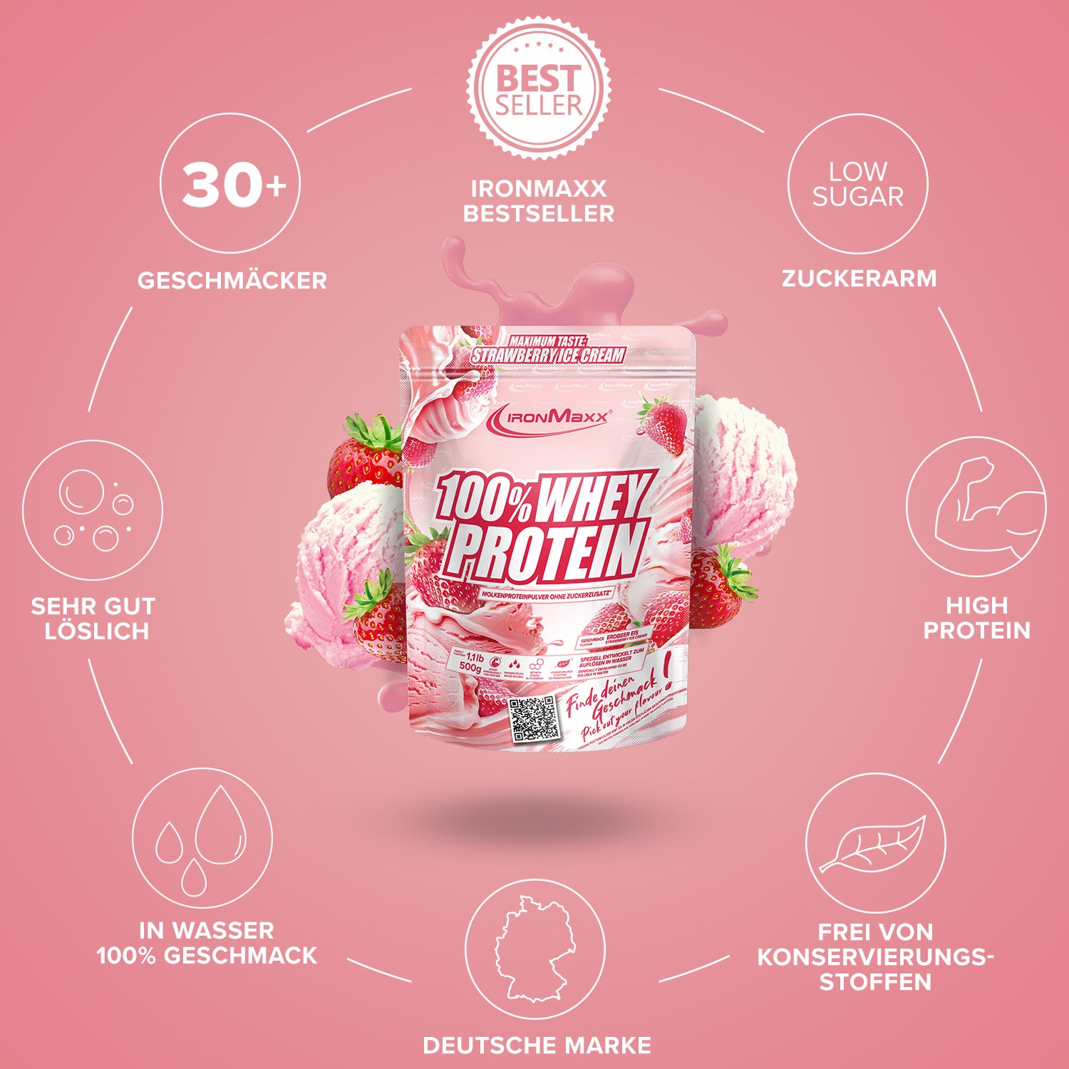 IronMaxx® 100% Whey Protein gehört zu den beliebtesten Eiweißshakes für Muskelaufbau, Regeneration und Diätphasen. Mit bis zu 80 % Eiweiß, einem vollständigen Aminosäurenprofil (inklusive BCAAs und EAAs) sowie einem cremigen Geschmack ist es der ideale Begleiter für deinen Fitnessalltag.