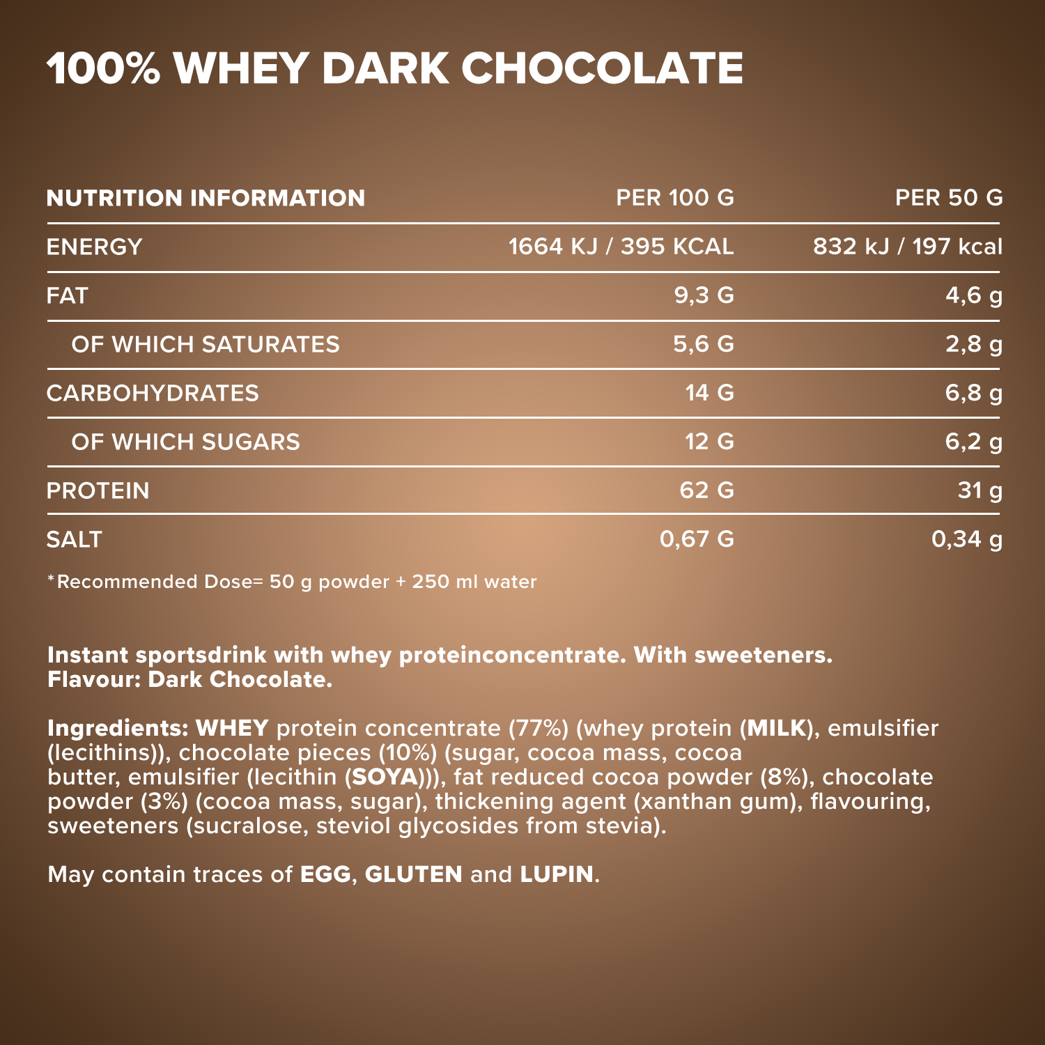 ²Eine Portion enthält 30 g Pulver und 200 ml Wasser oder Milch.³In unserem Designer Whey verwenden wir keinen zugesetzten Zucker, sondern setzen auf unbedenkliche