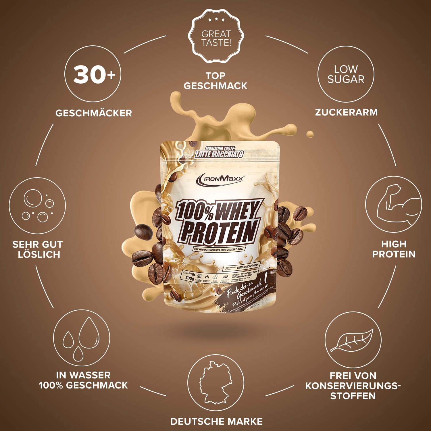 IronMaxx® 100% Whey Protein gehört zu den beliebtesten Eiweißshakes für Muskelaufbau, Regeneration und Diätphasen. Mit bis zu 80 % Eiweiß, einem vollständigen Aminosäurenprofil (inklusive BCAAs und EAAs) sowie einem cremigen Geschmack ist es der ideale Begleiter für deinen Fitnessalltag.