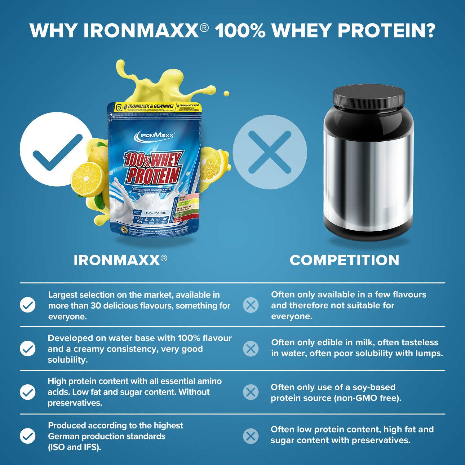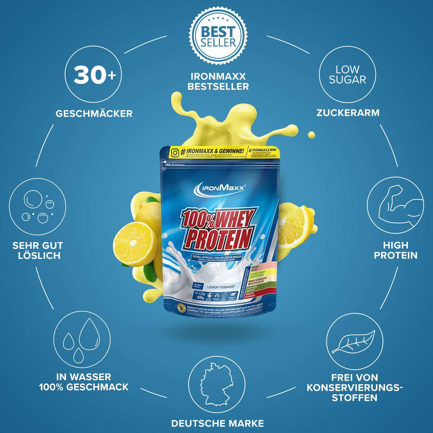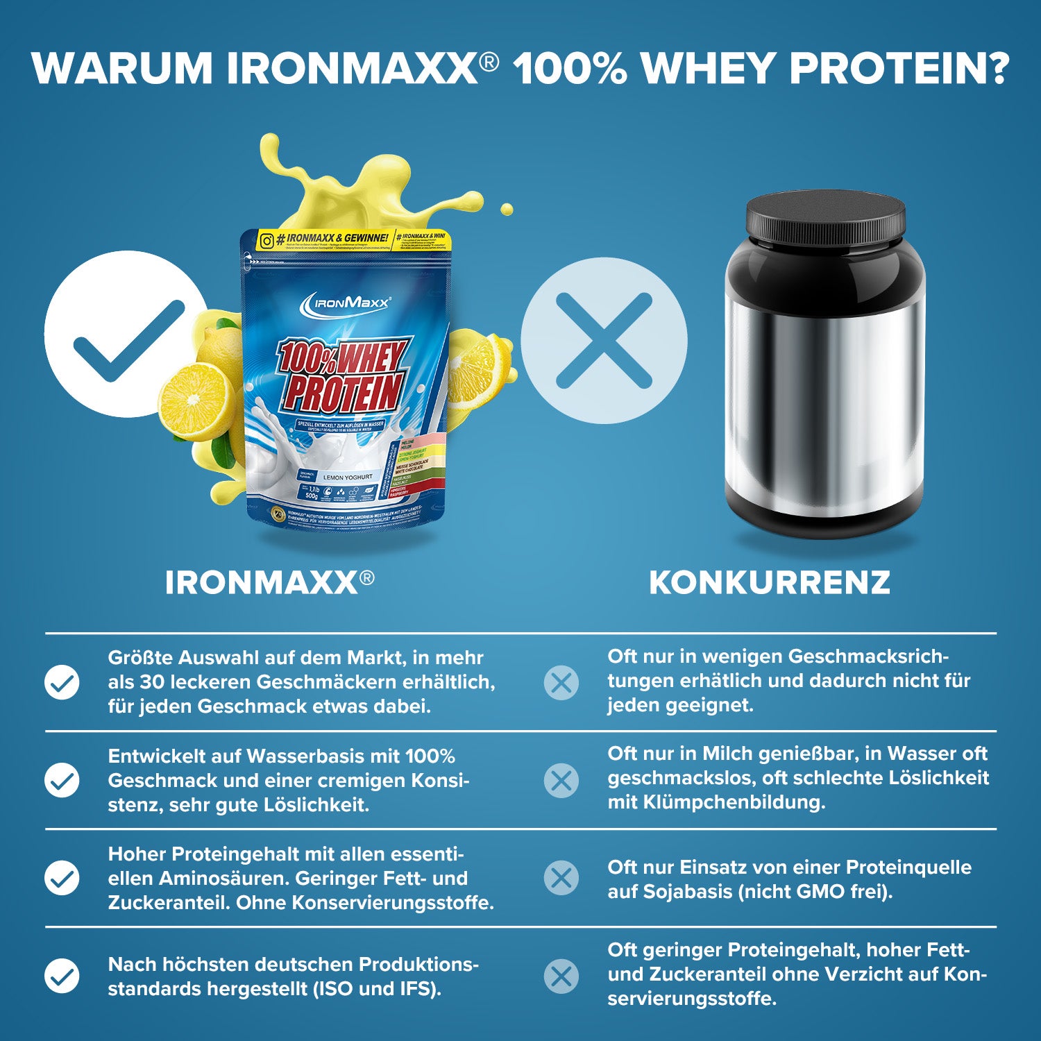 IronMaxx® 100% Whey Protein gehört zu den beliebtesten Eiweißshakes für Muskelaufbau, Regeneration und Diätphasen. Mit bis zu 80 % Eiweiß, einem vollständigen Aminosäurenprofil (inklusive BCAAs und EAAs) sowie einem cremigen Geschmack ist es der ideale Begleiter für deinen Fitnessalltag.