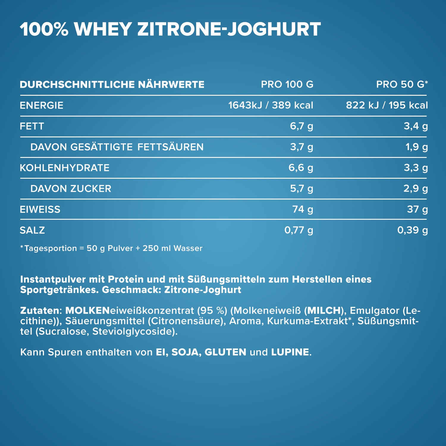 ²Eine Portion enthält 30 g Pulver und 200 ml Wasser oder Milch.³In unserem Designer Whey verwenden wir keinen zugesetzten Zucker, sondern setzen auf unbedenkliche