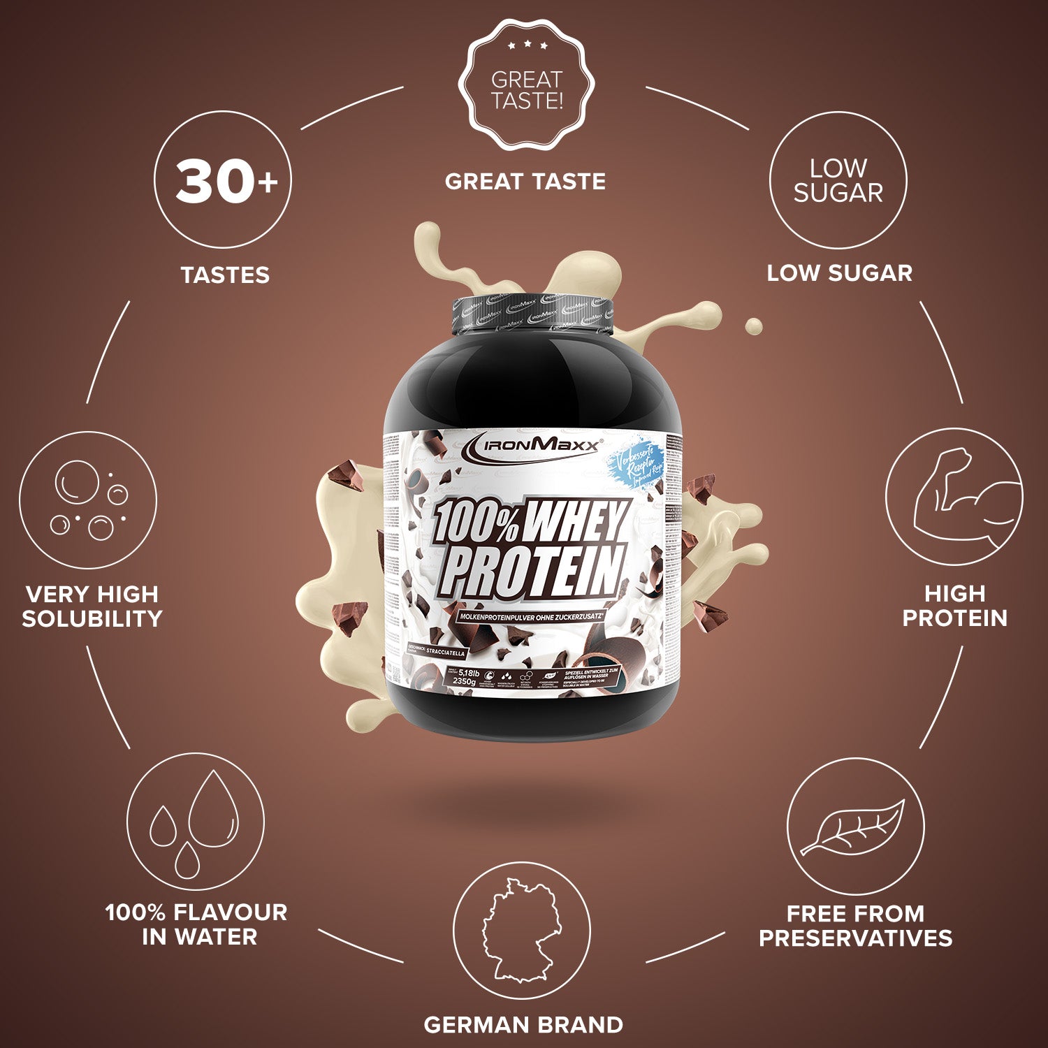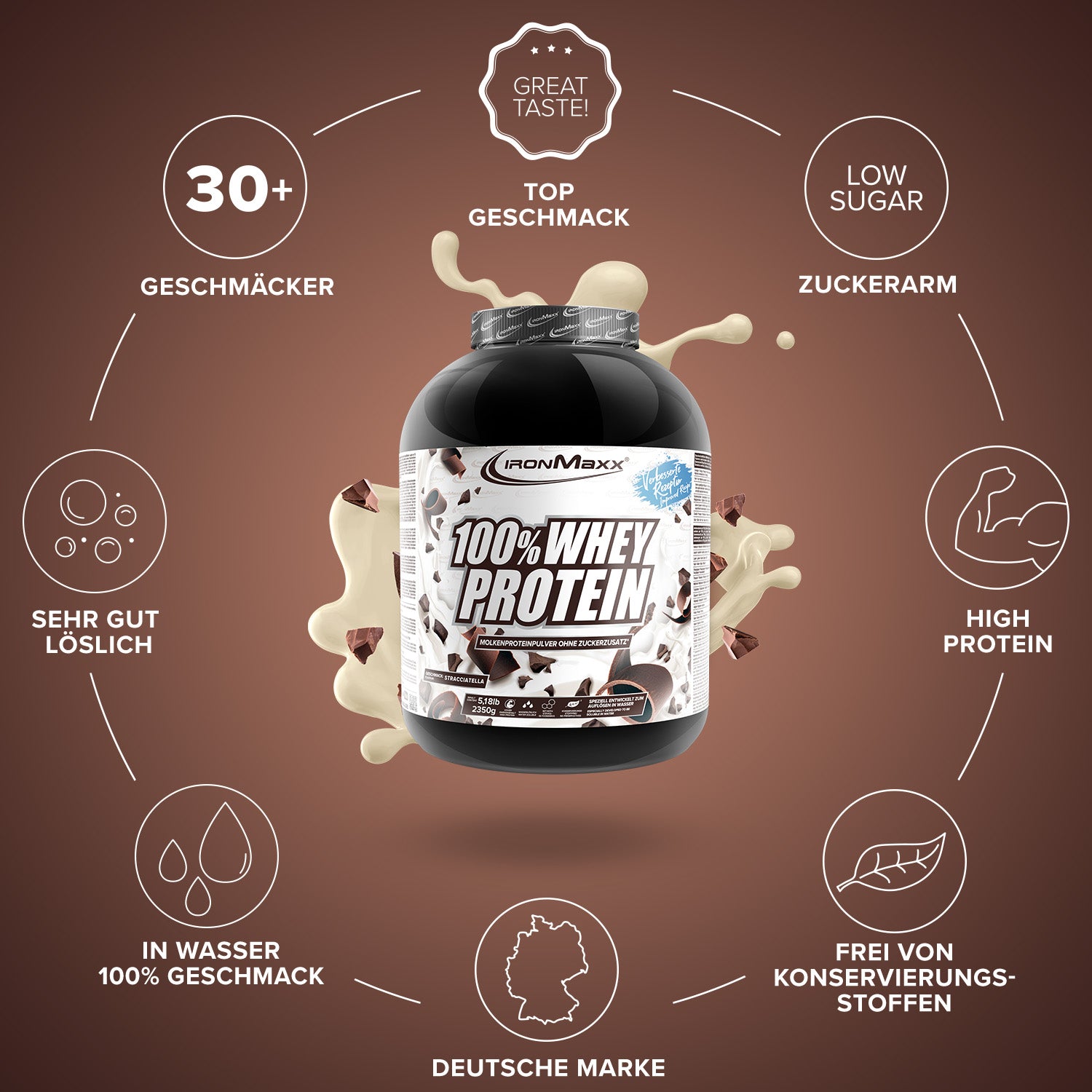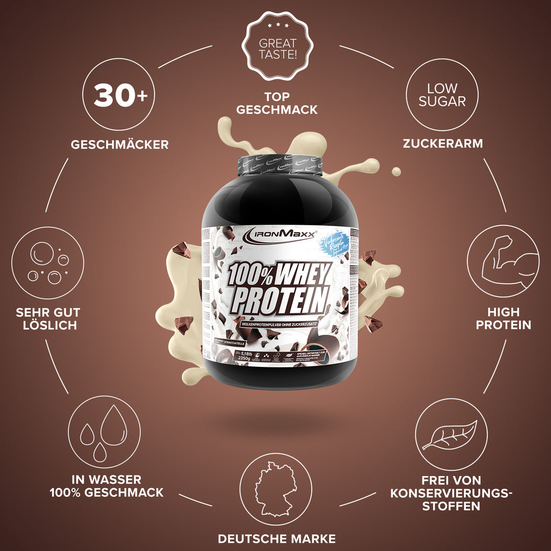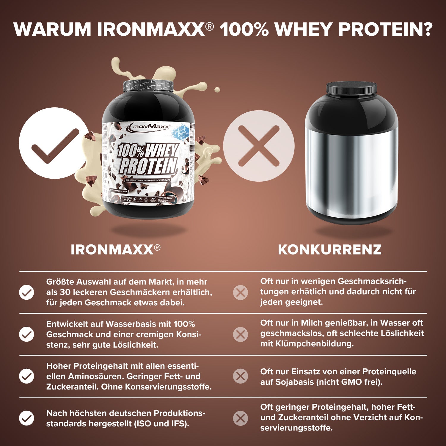 IronMaxx® 100% Whey Protein zählt zu den beliebtesten Proteinshakes für Muskelaufbau, Regeneration und Diätphasen. Mit bis zu 80 % Eiweiß, einem kompletten Aminosäurenprofil (inkl. BCAAs & EAAs) und cremigem Geschmack ist es der ideale Begleiter für deinen Fitnessalltag.