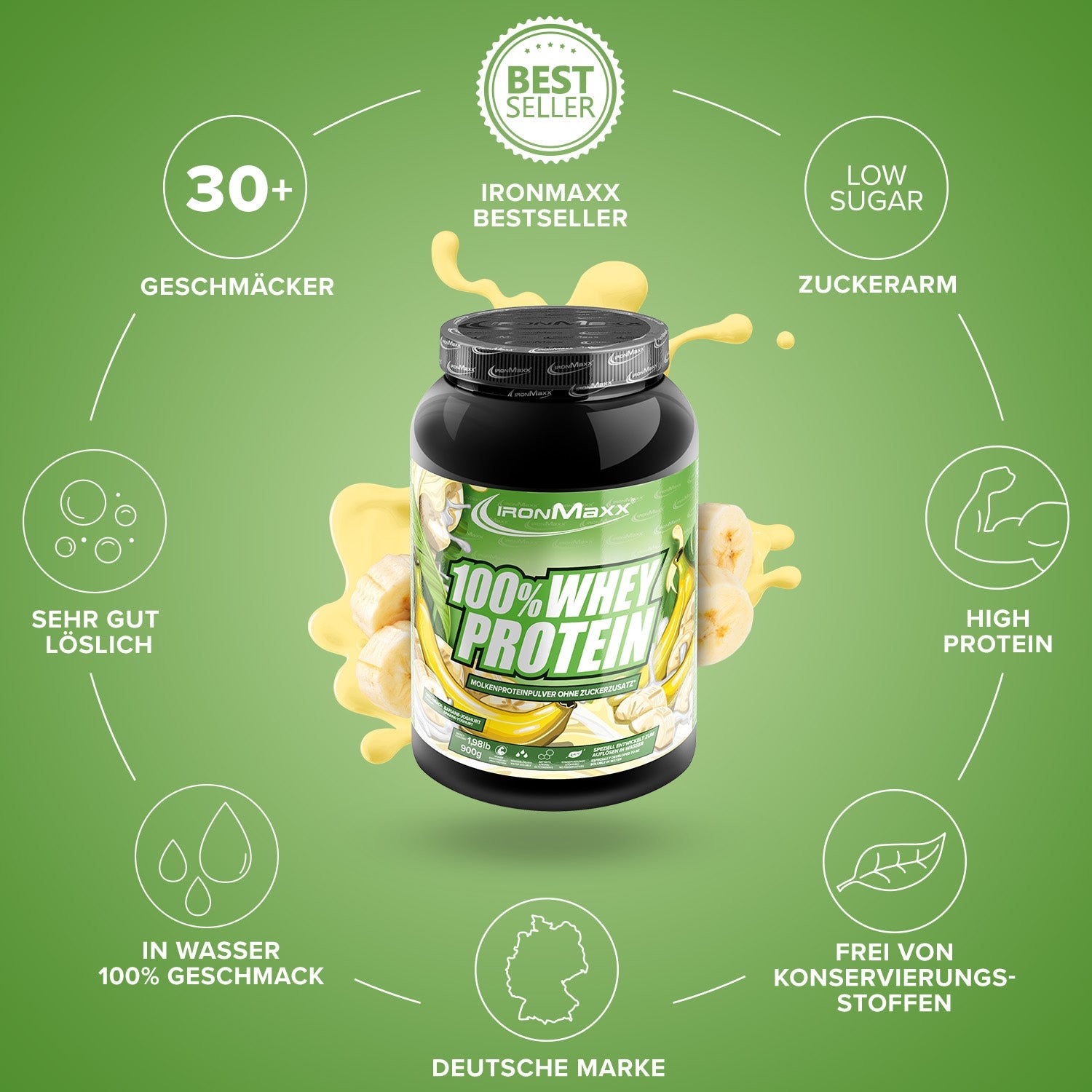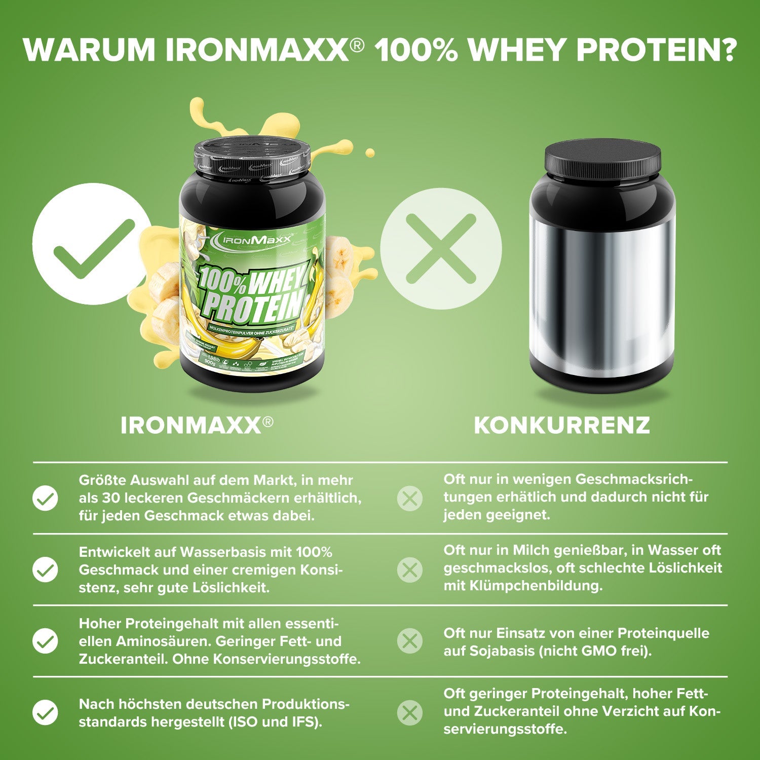 IronMaxx® 100% Whey Protein zählt zu den beliebtesten Proteinshakes für Muskelaufbau, Regeneration und Diätphasen. Mit bis zu 80 % Eiweiß, einem kompletten Aminosäurenprofil (inkl. BCAAs & EAAs) und cremigem Geschmack ist es der ideale Begleiter für deinen Fitnessalltag.
