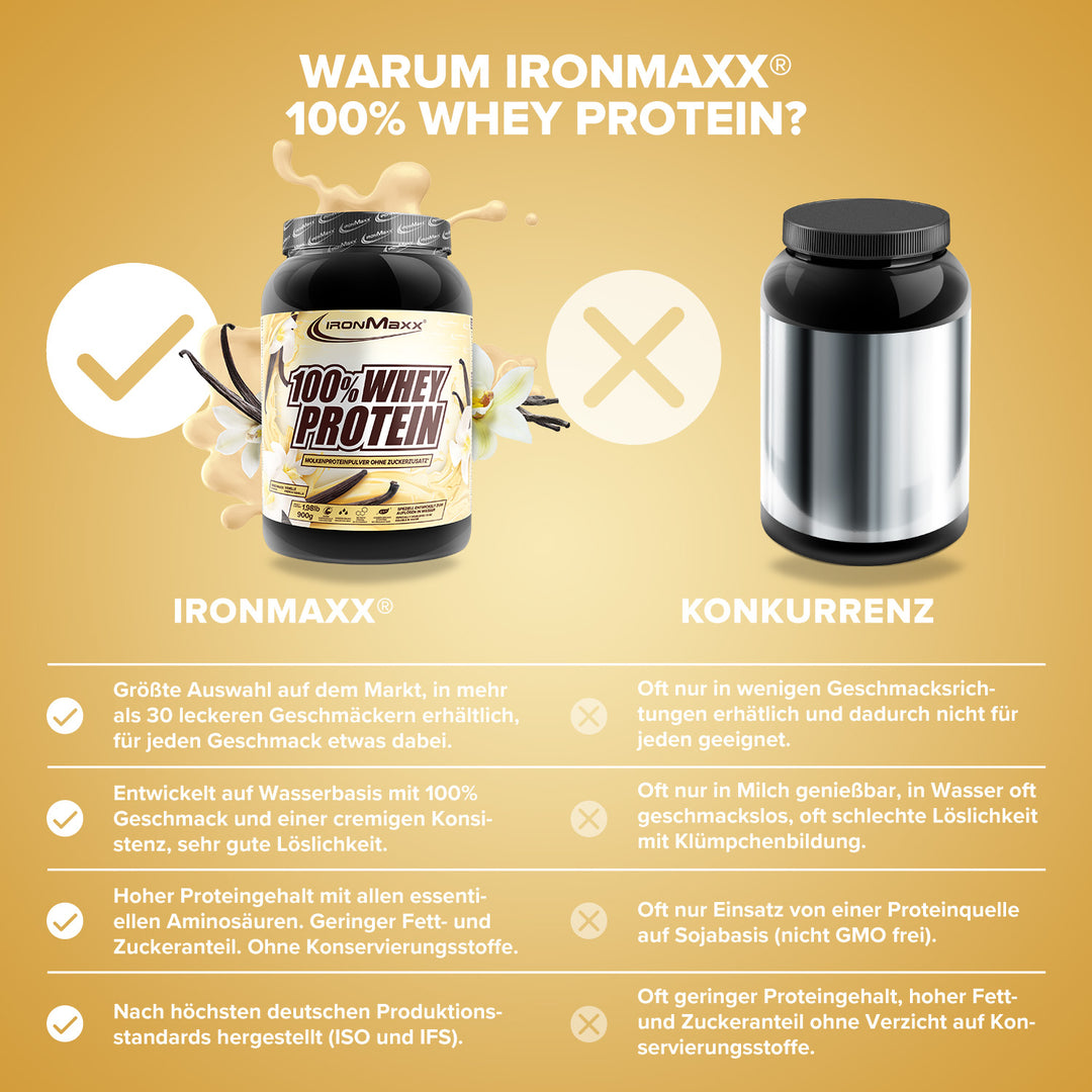IronMaxx® 100% Whey Protein zählt zu den beliebtesten Proteinshakes für Muskelaufbau, Regeneration und Diätphasen. Mit bis zu 80 % Eiweiß, einem kompletten Aminosäurenprofil (inkl. BCAAs & EAAs) und cremigem Geschmack ist es der ideale Begleiter für deinen Fitnessalltag.