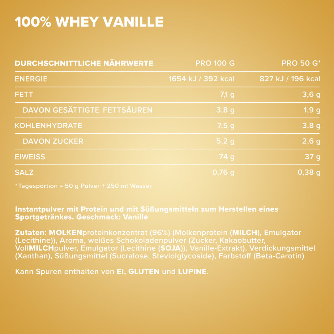 ²Eine Portion enthält 30 g Pulver und 200 ml Wasser oder Milch.³In unserem Designer Whey verwenden wir keinen zugesetzten Zucker, sondern setzen auf unbedenkliche