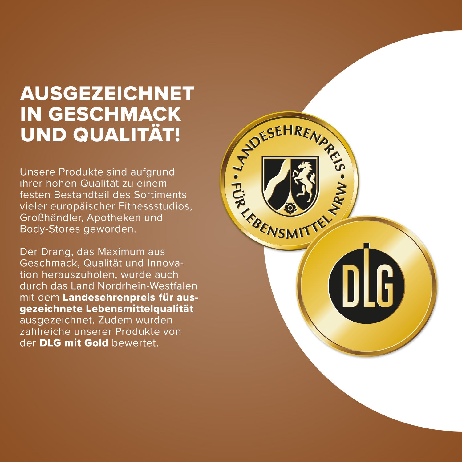 Vor Wärme, Feuchtigkeit und Sonneneinstrahlung geschützt aufbewahren. Proteine tragen zu einer Zunahme an Muskelmasse bei. Eine ausgewogene und abwechslungsreiche Ernährung und eine gesunde Lebensweise sind wichtig. Enthält von Natur aus Zucker.