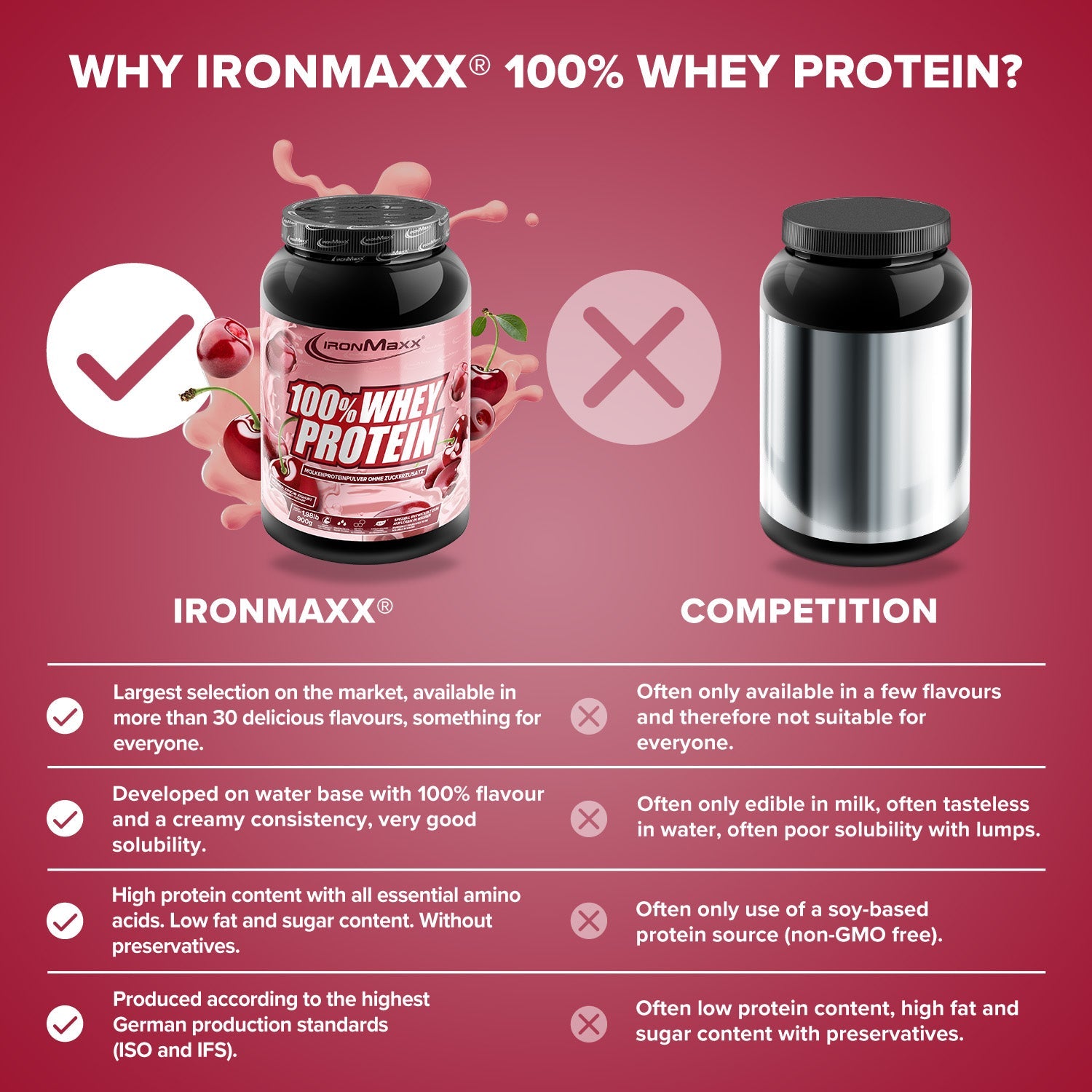 IronMaxx® 100% Whey Protein zählt zu den beliebtesten Proteinshakes für Muskelaufbau, Regeneration und Diätphasen. Mit bis zu 80 % Eiweiß, einem kompletten Aminosäurenprofil (inkl. BCAAs & EAAs) und cremigem Geschmack ist es der ideale Begleiter für deinen Fitnessalltag.