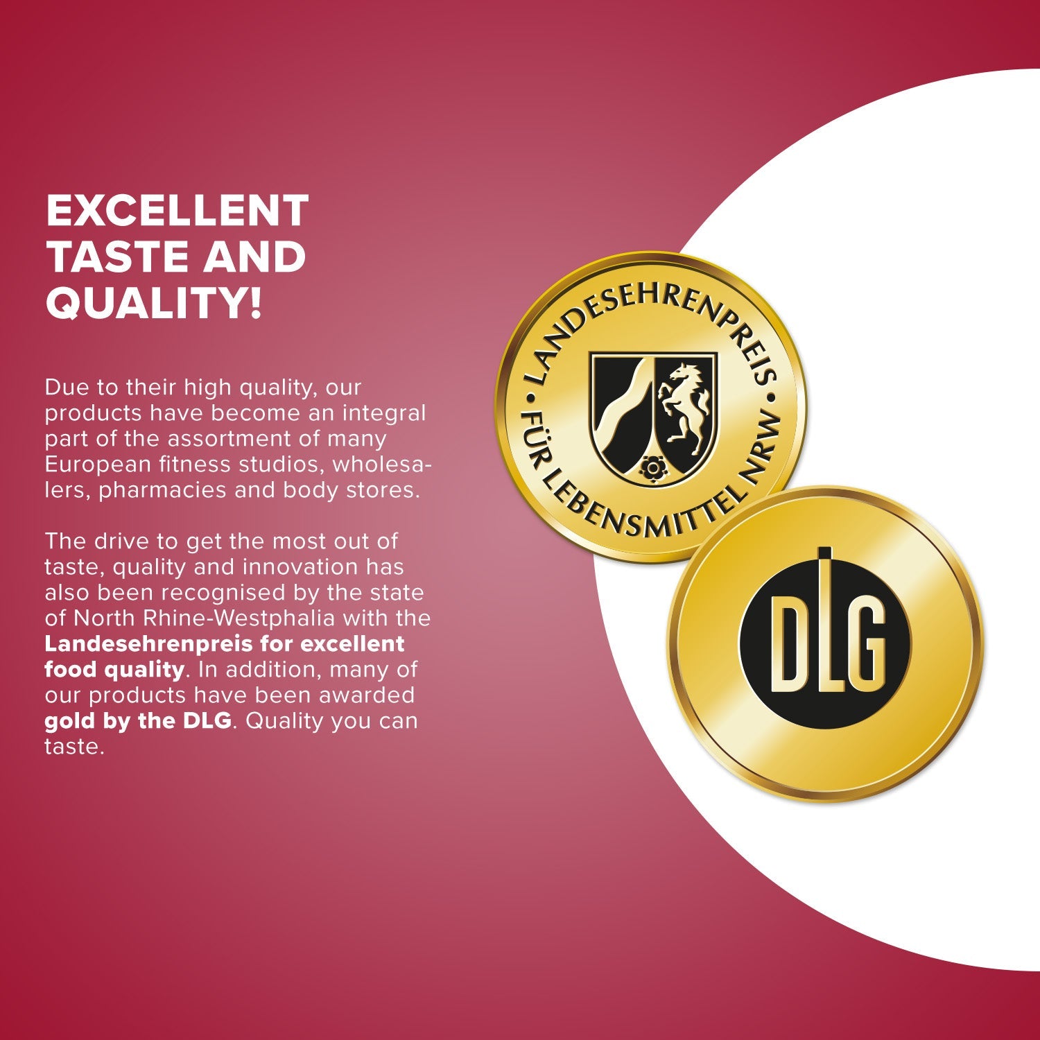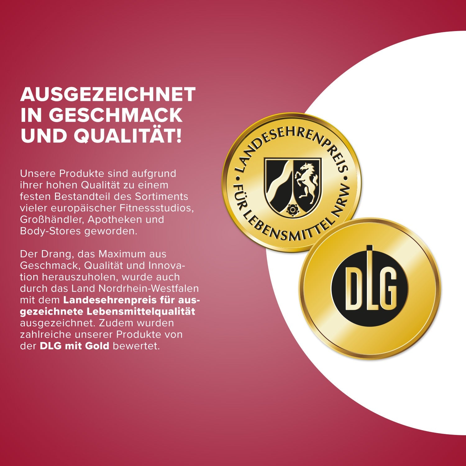 Die angegebene empfohlene tägliche Verzehrmenge darf nicht überschritten werden! Außerhalb der Reichweite von Kindern lagern! Vor Wärme, Feuchtigkeit und Sonneneinstrahlung geschützt aufbewahren. Proteine tragen zu einer Zunahme an Muskelmasse bei. Eine ausgewogene und abwechslungsreiche Ernährung und eine gesunde Lebensweise sind wichtig. Laut Handelsbrauch.