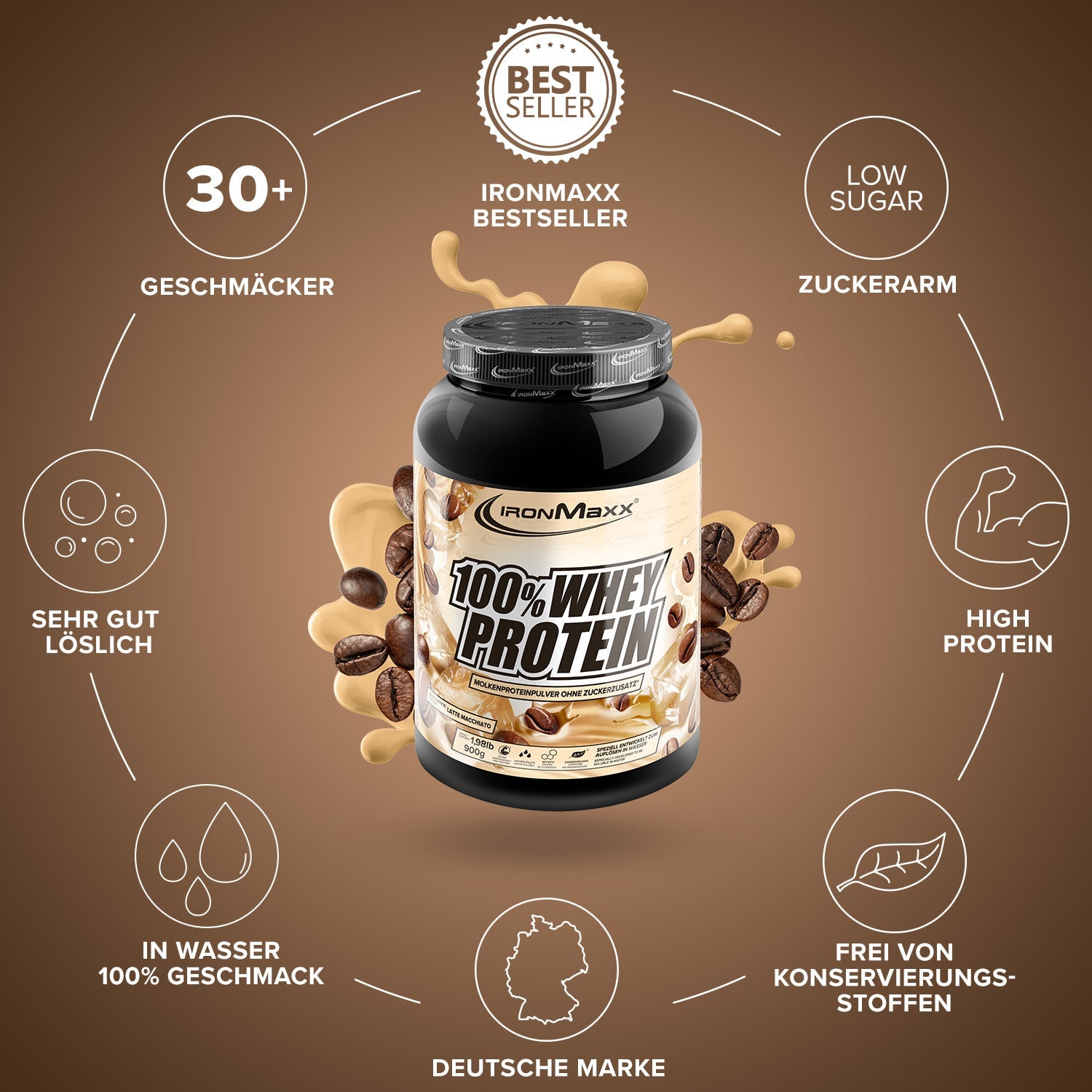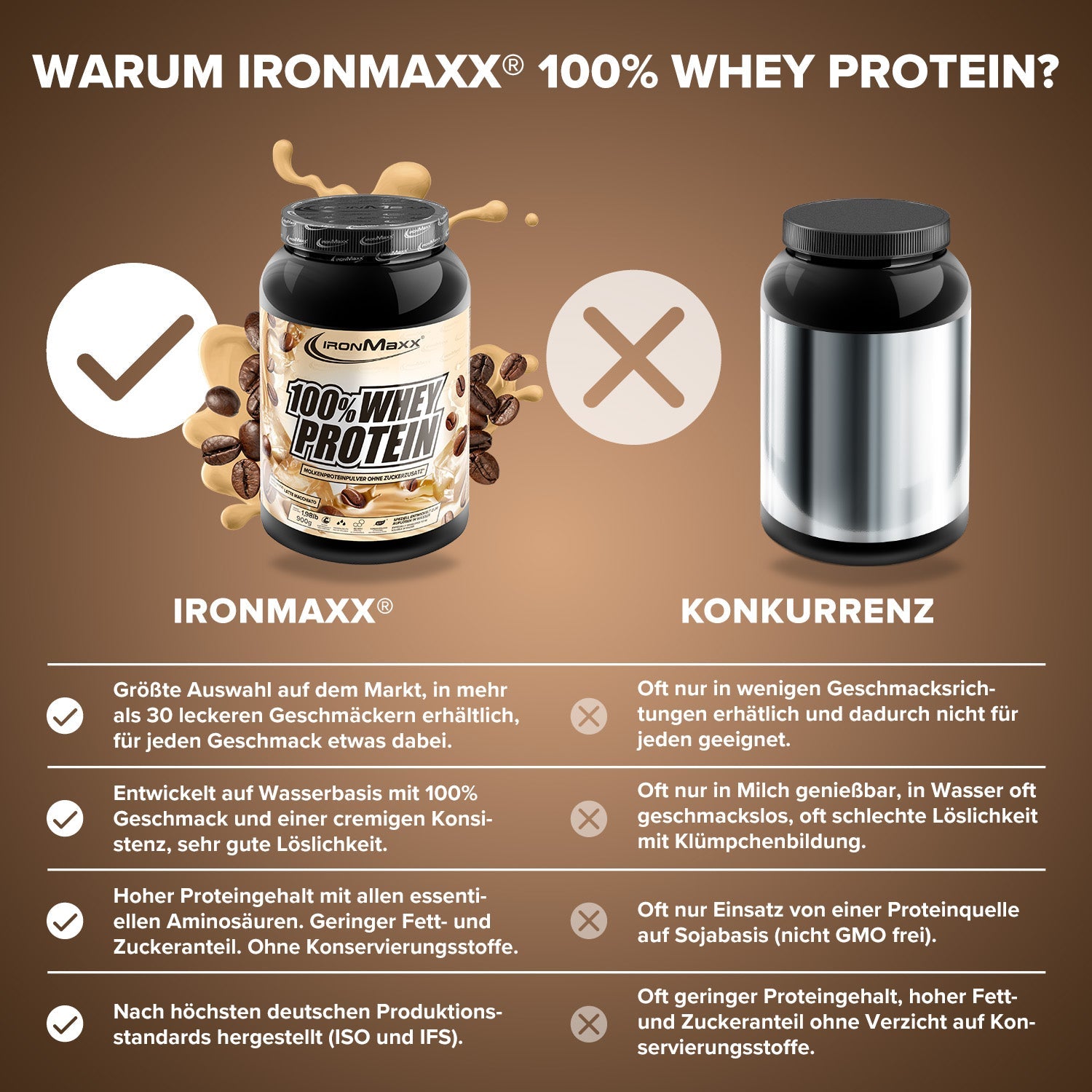 IronMaxx® 100% Whey Protein zählt zu den beliebtesten Proteinshakes für Muskelaufbau, Regeneration und Diätphasen. Mit bis zu 80 % Eiweiß, einem kompletten Aminosäurenprofil (inkl. BCAAs & EAAs) und cremigem Geschmack ist es der ideale Begleiter für deinen Fitnessalltag.
