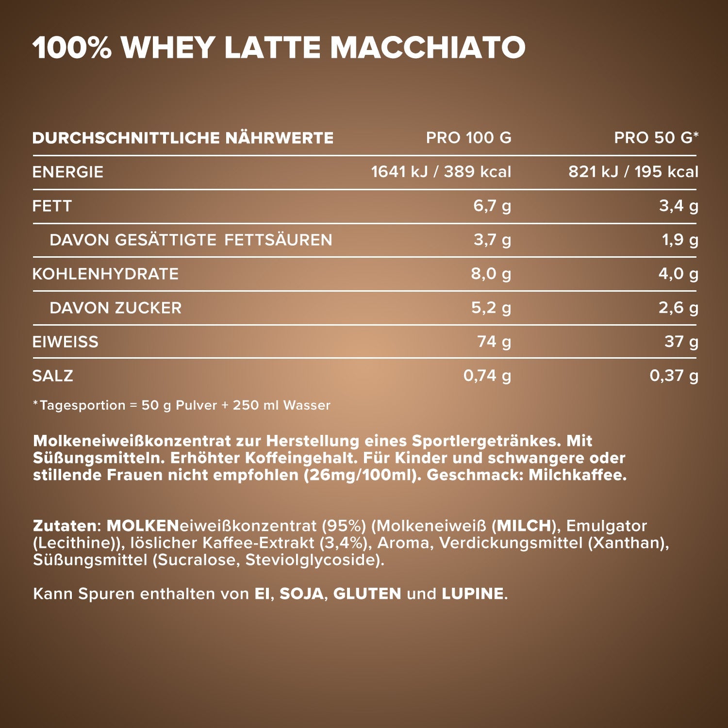 ²Eine Portion enthält 30 g Pulver und 200 ml Wasser oder Milch.³In unserem Designer Whey verwenden wir keinen zugesetzten Zucker, sondern setzen auf unbedenkliche