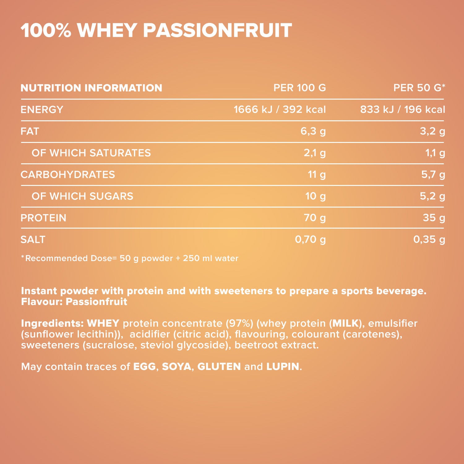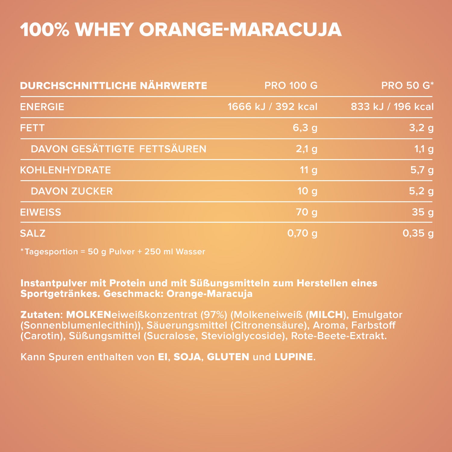 ²Eine Portion enthält 30 g Pulver und 200 ml Wasser oder Milch.³In unserem Designer Whey verwenden wir keinen zugesetzten Zucker, sondern setzen auf unbedenkliche