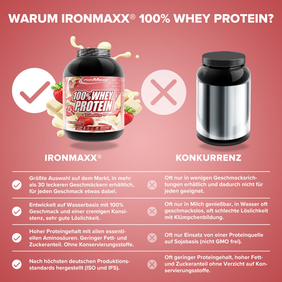 IronMaxx® 100% Whey Protein zählt zu den beliebtesten Proteinshakes für Muskelaufbau, Regeneration und Diätphasen. Mit bis zu 80 % Eiweiß, einem kompletten Aminosäurenprofil (inkl. BCAAs & EAAs) und cremigem Geschmack ist es der ideale Begleiter für deinen Fitnessalltag.